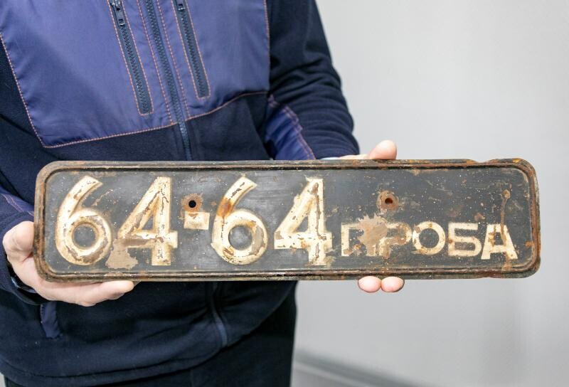 «В конце прошлого года в нашем отделе начался ремонт помещений, – рассказала контрольный мастер ОТК Юлия Хотеева. – В одном из кабинетов в деревянном коробе, закрывающем несущую колонну, образовалась щель. Мы заглянули туда и обнаружили металлическую табличку, которая оказалась регистрационным номером автомобиля». Специалисты департамента техконтроля хотели передать находку в музей АвЗ, но экспонат не подошел, поскольку это музей боевой славы. Фото регистрационного знака было отправлено директору музея «КАМАЗа» Александру Чухонцеву, который и оценил артефакт по достоинству.