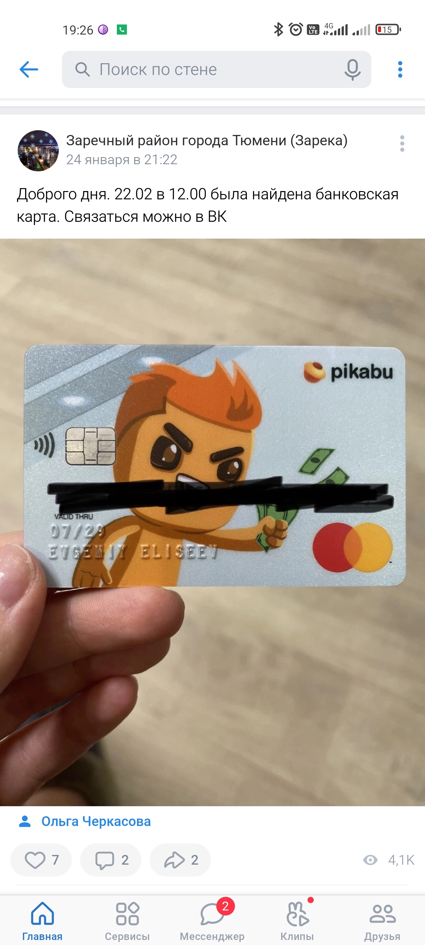 1 fveduh Найдена карта пикабушника (Тюмень) 4 года назад Увидел объявление в группе своего города, решил продублировать сюда. Хозяин, ищи нашедшего в группе. Если отпишешься, что всё норм - будешь молодец!)) Банковская карта Потерянные вещи Тюмень Без рейтинга Длиннопост Ещё 0
