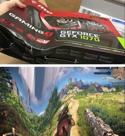 grezetix Найти картинку по описанию 6 лет назад Фото-прикол состоит из двух частей. Вверху изображено что-то типа такого(см. ниже). А ниже запущенна игра( вроде бы Ведьмак) на этой видеокарте и картинка в игре тоже как-бы перекошена как и видеокарта. Никак не могу найти Ведьмак GTX