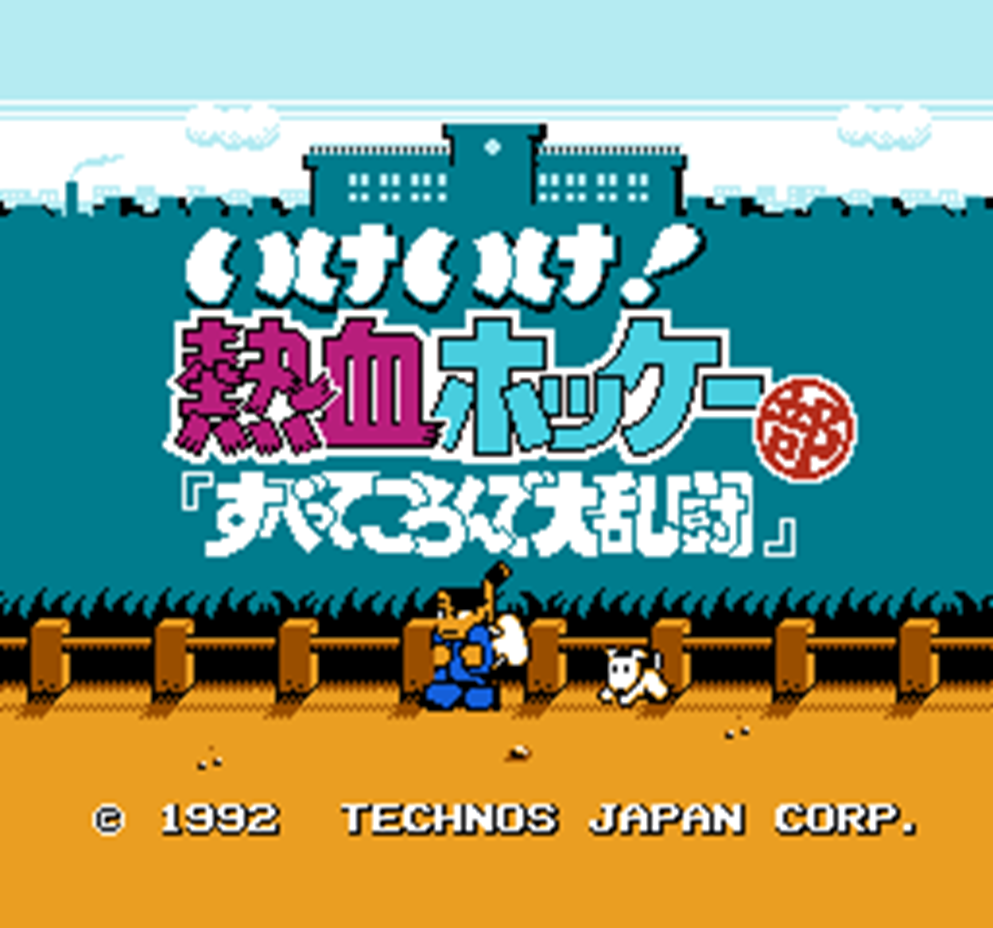 Всем привет, сегодня мы с вами рассмотрим предпоследнюю игру от technos , которая у сеня была, выпущенную на год раньше баскетбола в 1992 году: Ike ike! Nekketsu hockey bu.