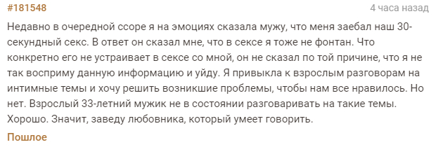 5 Небезопасный контент (18+) Авторизуйтесь или зарегистрируйтесь для просмотра FRUSL Баяны Отношения "Назло бабушке отморожу уши" 3 года назад Подслушано Скриншот Муж Жена Брак (супружество) Мат Секс Проблемы в отношениях Мужчины и женщины 1 Ещё 0