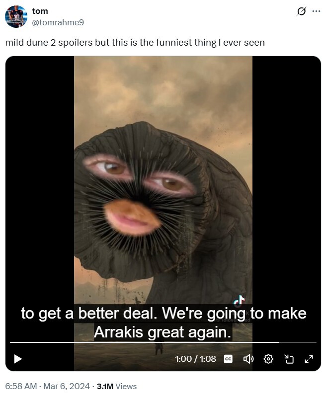 К слову, мне вспомнился самый смешной тикток 2024 года, где Шай-Хулуд толкает предвыборную речь в стиле Трампа – клянусь, если вы в свое время пропустили этот шедевр, самое время наверстать!