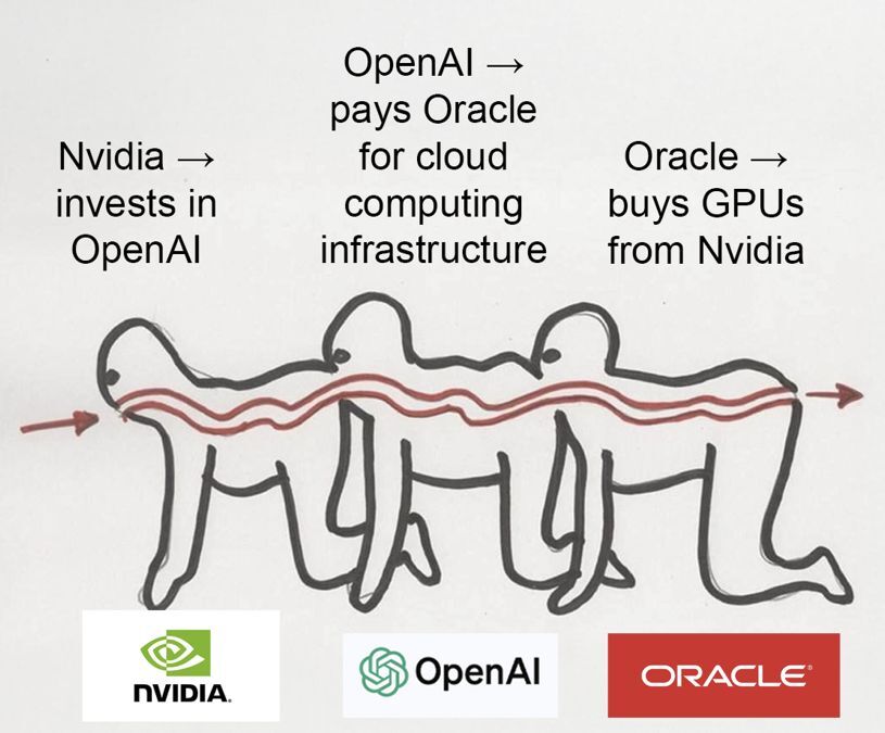 Древнее пророчество сбылось: инвестиционная AI-многоножка, наконец, укусила себя за хвост и превратилась в уробороса по циркулярному надуванию капитализации участвующих компаний