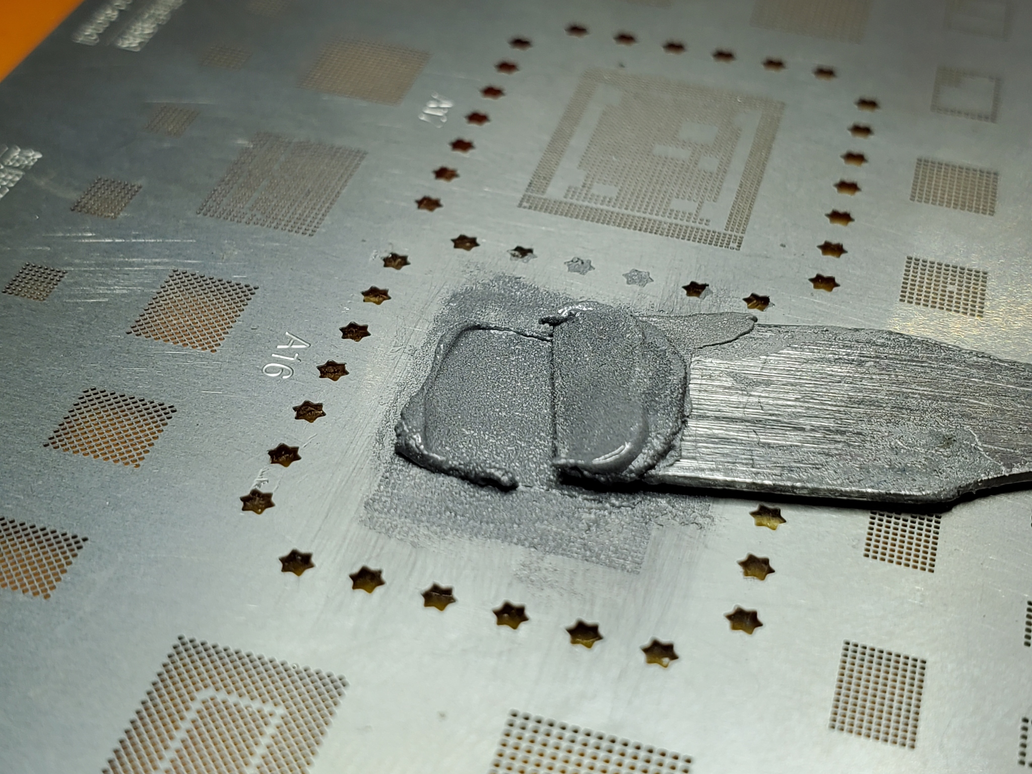 Следующий этап - зачистка нижней доски и ошаривание межплатной рамы. Тут пасту использую температурой подешевле, всего 148°