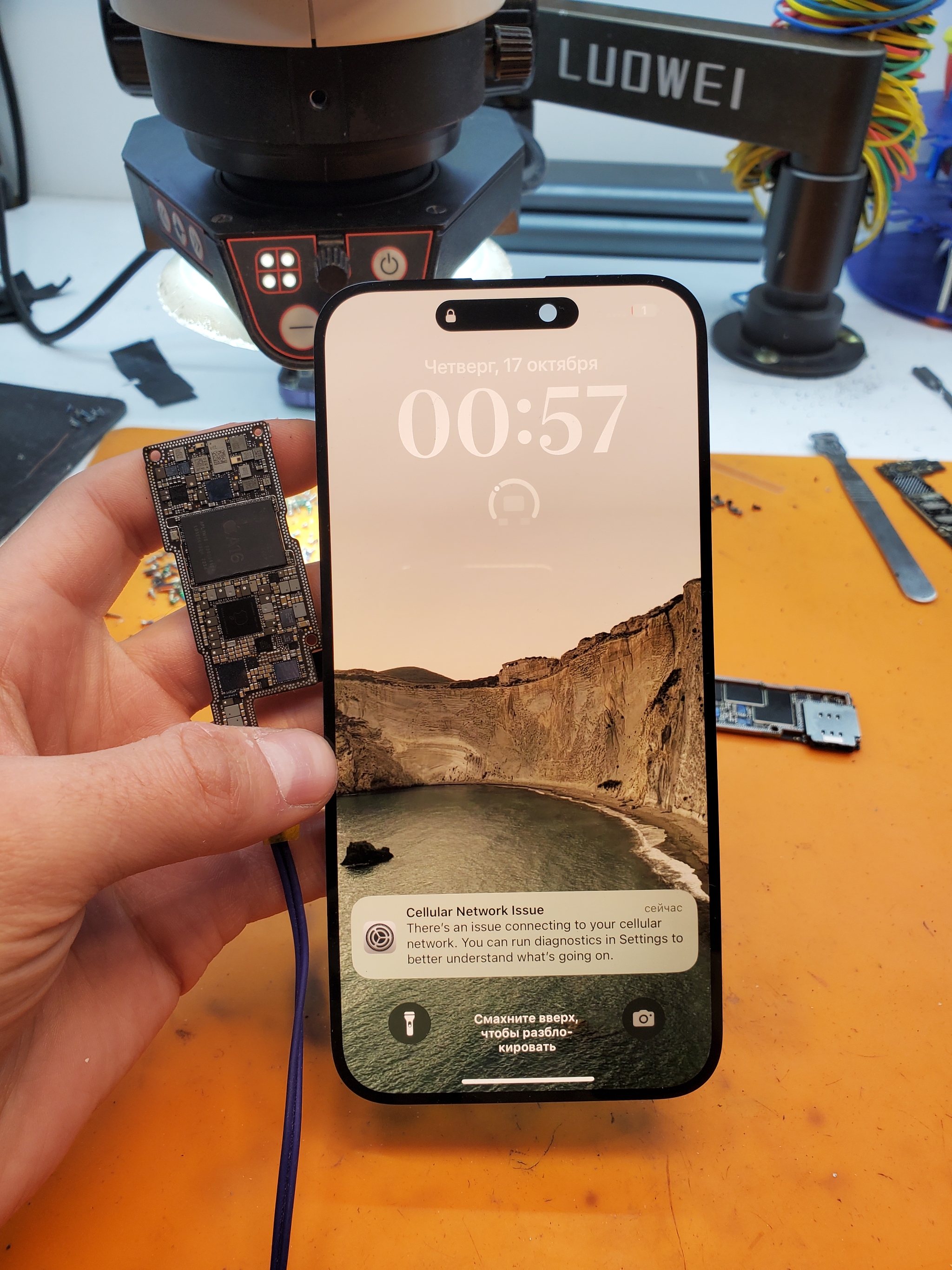 И нежно защищаю его от компаунда, ибо ошибка при зачистке может стоить незаработанных денег и клиент потеряет телефон.