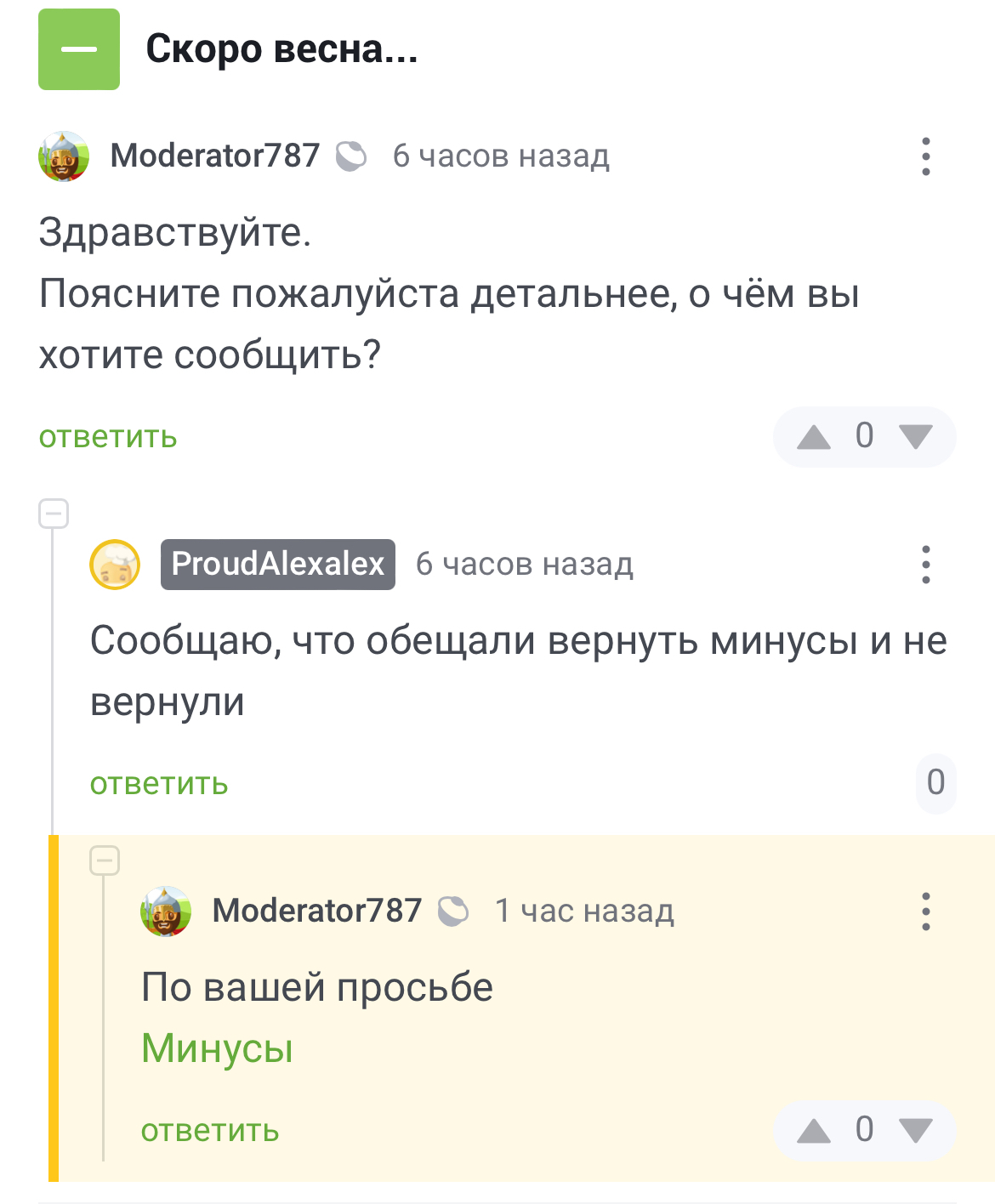 ProudAlexalex 8 месяцев назад Не благодарите) Хотя их по сути и не вернули( [моё] Минусы Пикабу Скриншот Ещё 0