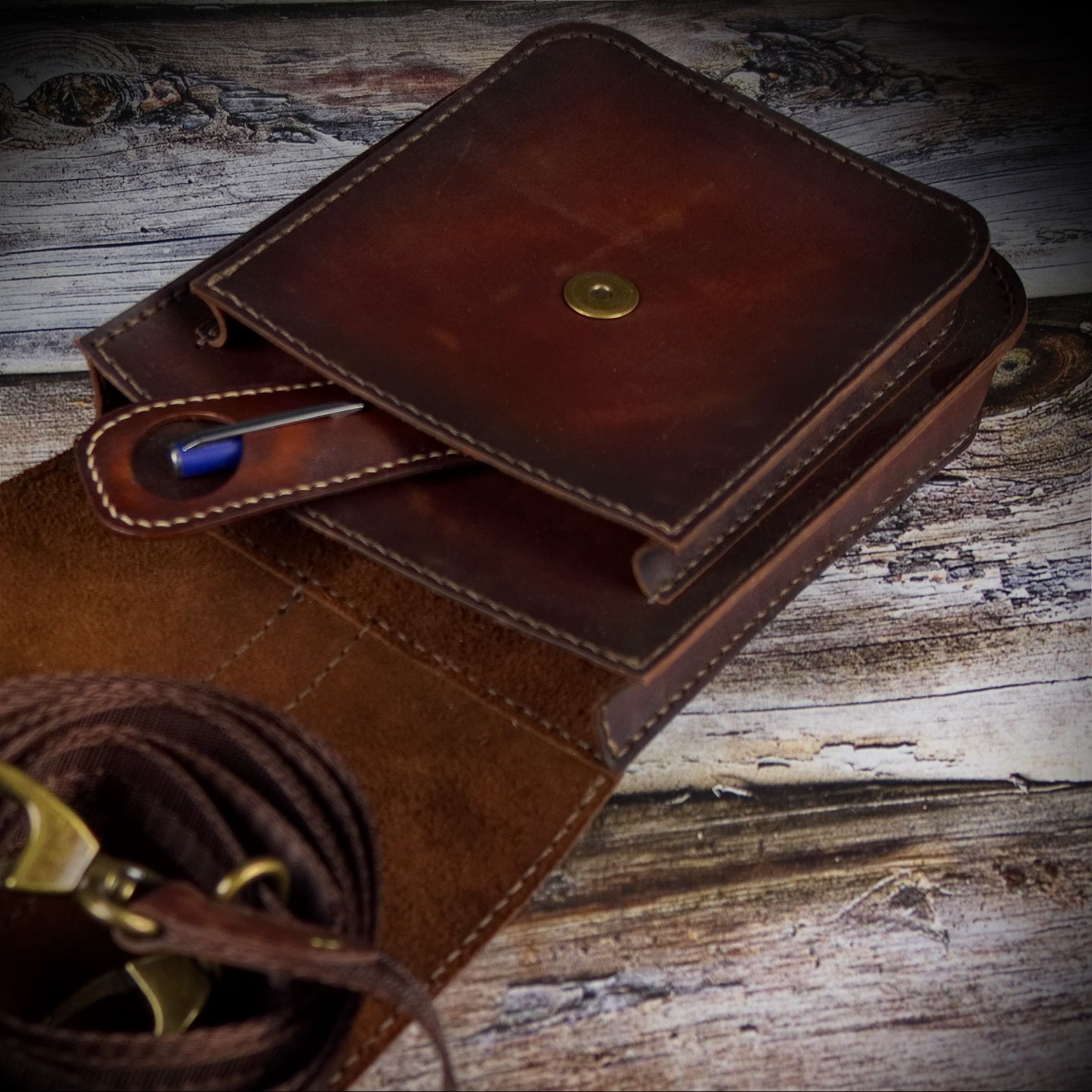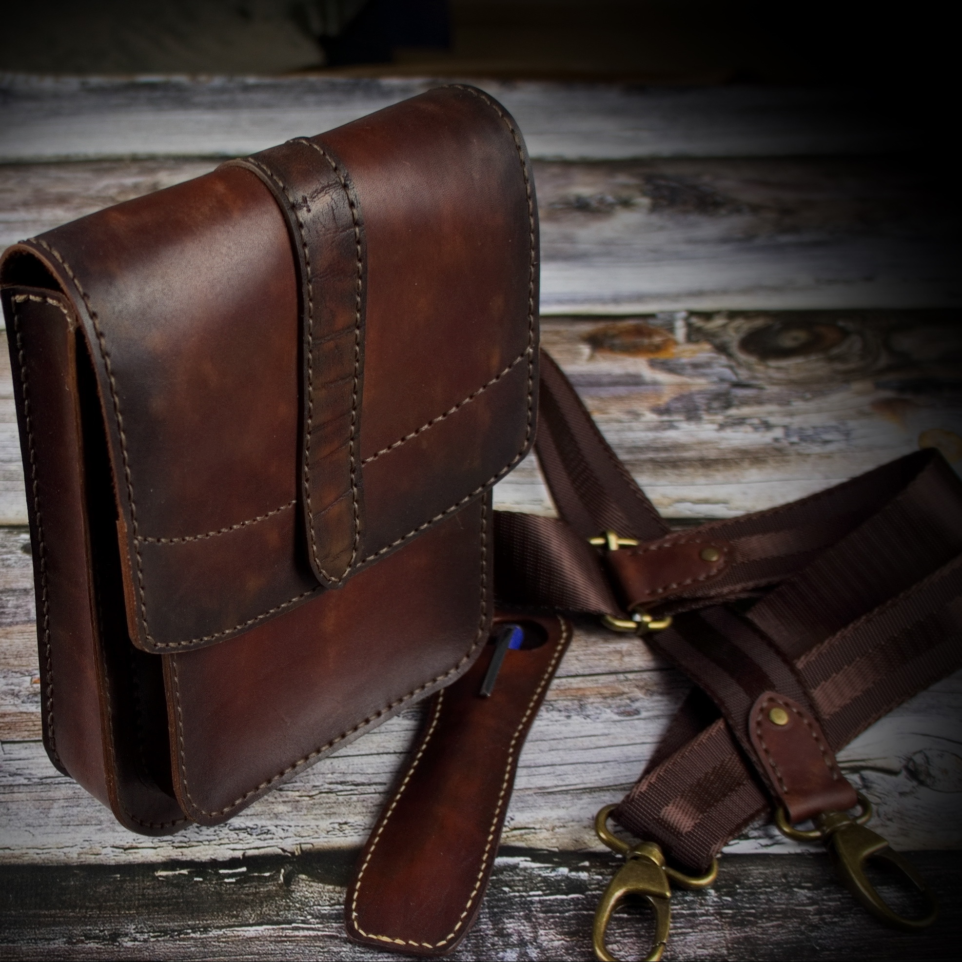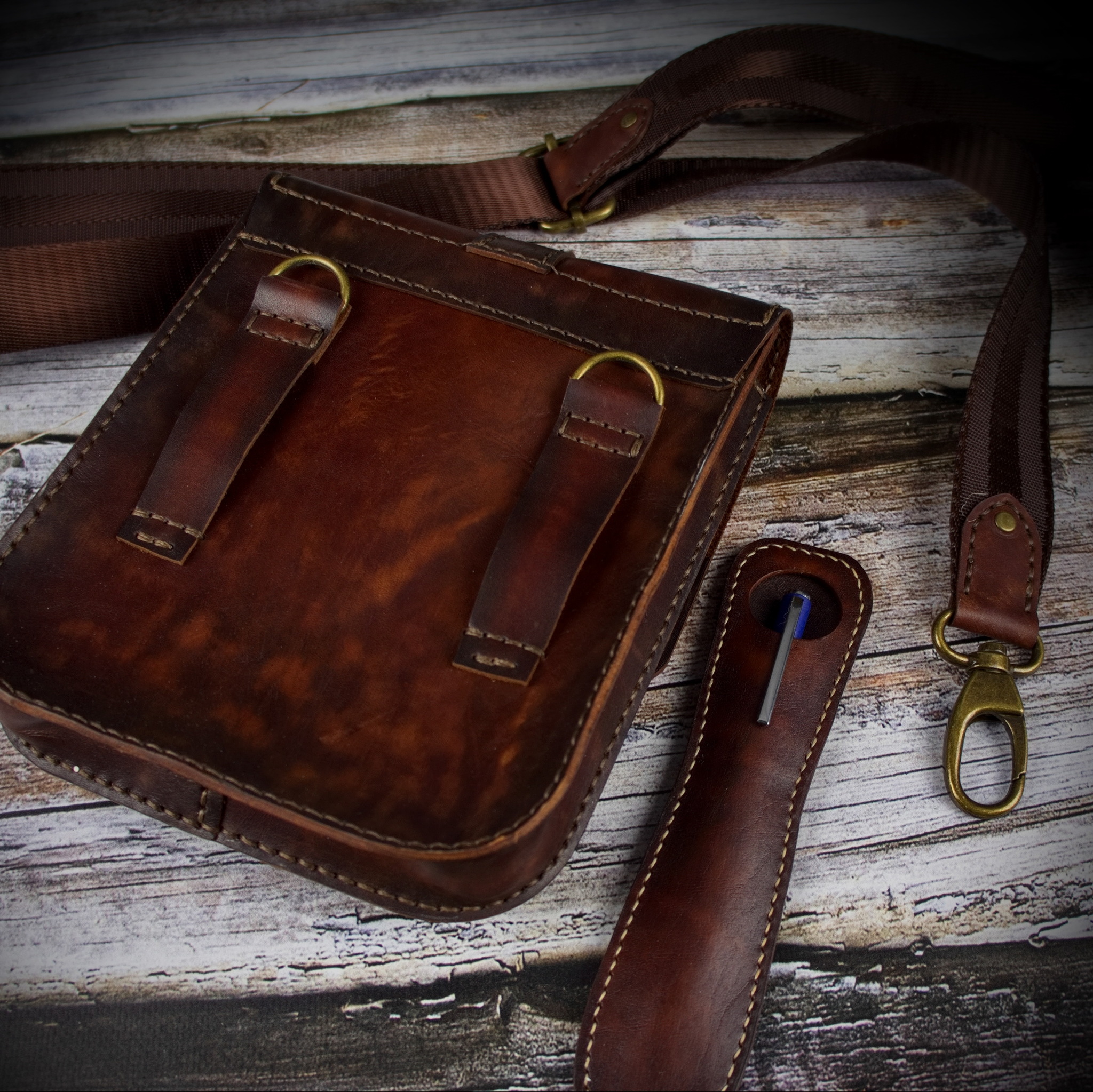 Остаток кожи пошел на чехол для ручки, прилагается к сумке)).