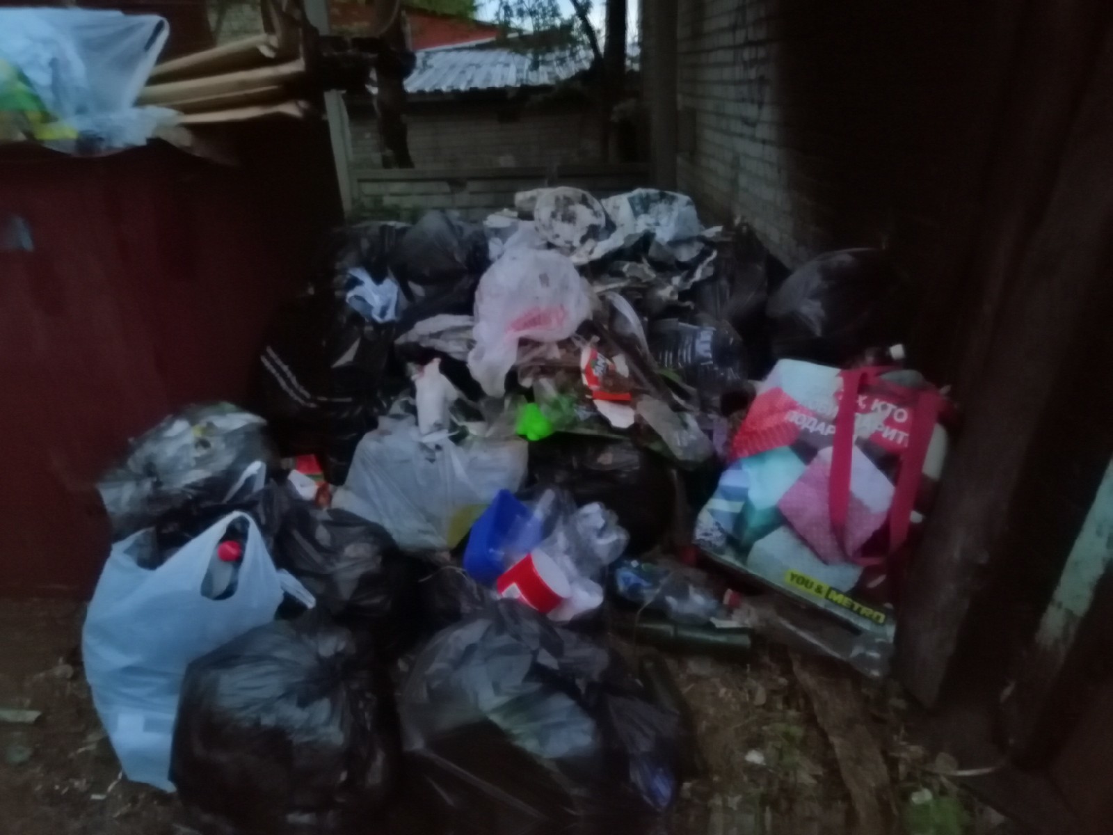 Мы, как цивилизованные люди посидели спокойно, без драк, шума и прочего непотребства, но.. Переклинило меня собрать не только наш мусор, который мы с самого начала складывали в мешки (заранее прихваченные из дома), но и чужой, заваливший ближайшую канаву (фото, к сожалению, не будет). Одев перчатки, купленные заранее, в большой пакет, я забивал его по горлышко и выносил на помойку, единственный бак уже был заполнен под завязку и приходилось сваливать мусор рядом. Естественно, непрактично и нехорошо, но что делать... Трудились мы вдвоем с женою. Она, присоединившись ко мне, с удивлением замечала, как гуляющие сторонились ("Как от прокаженной"). Да я и сам удивлялся.