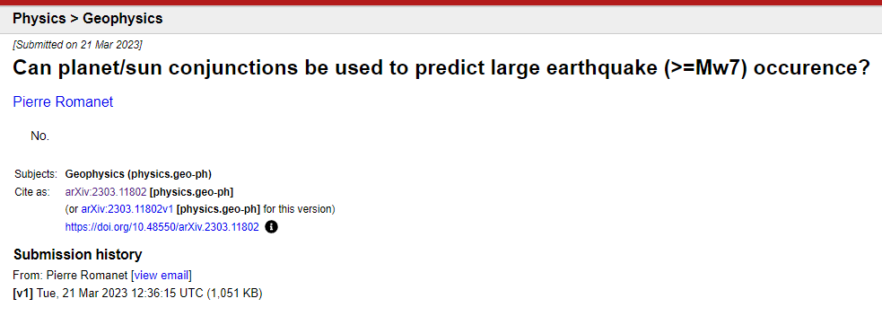 * Можно ли использовать соединение планета/солнце для предсказания сильного землетрясения (>=Mw7)?