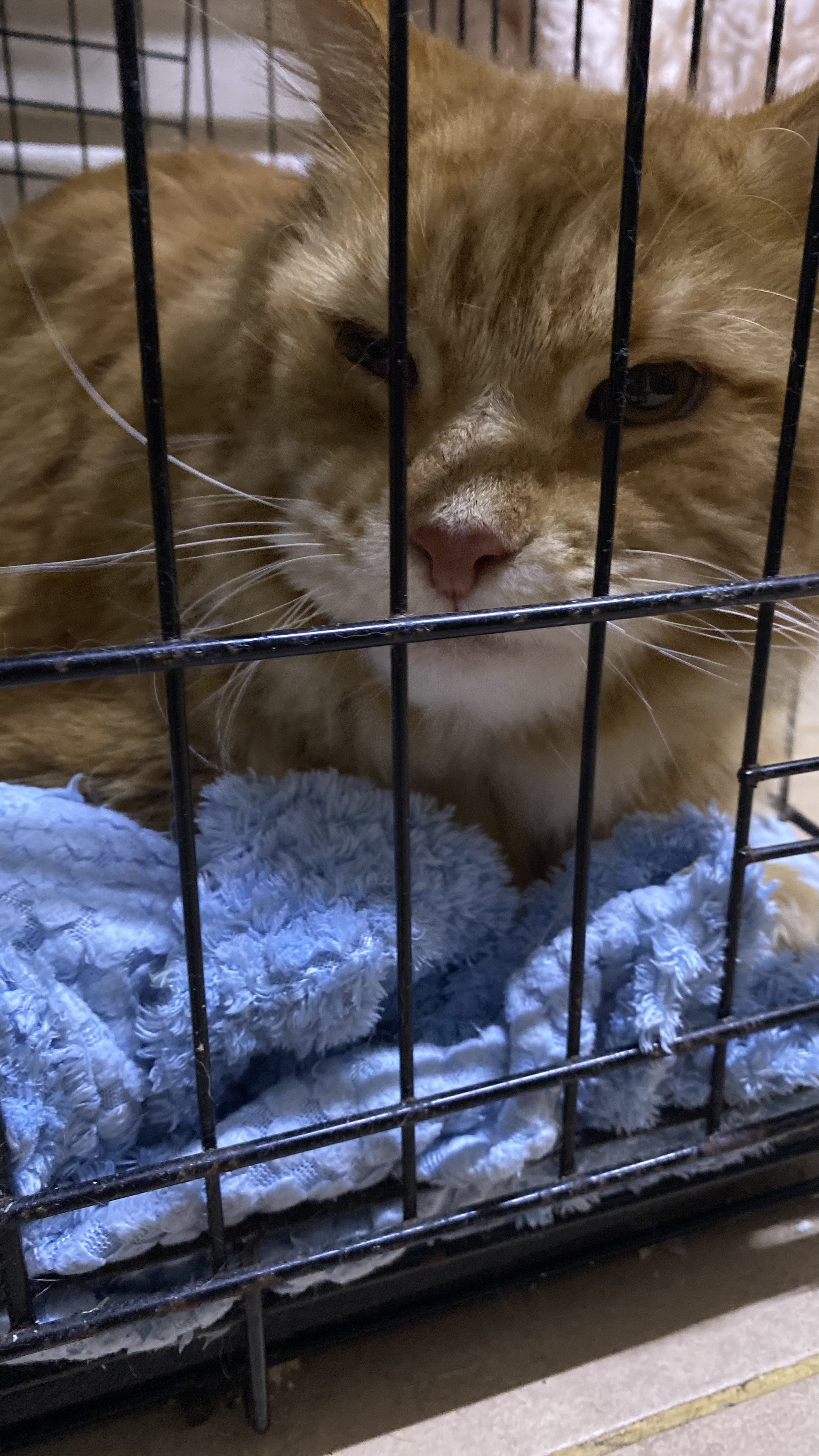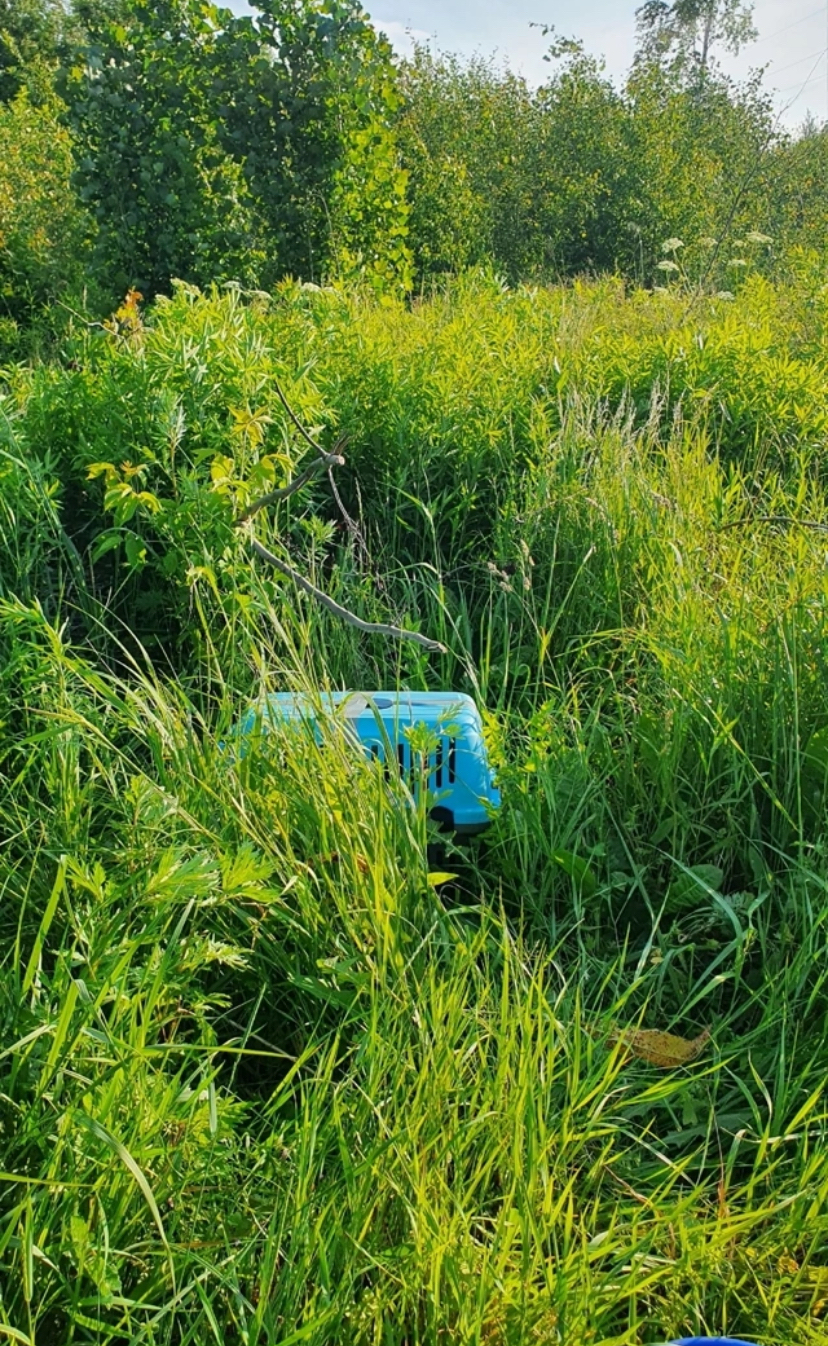 Но уже ближе к вечеру кота нашли в лесу, где он стоял в переноске, совсем один. Это чистая случайность, что его там нашли...