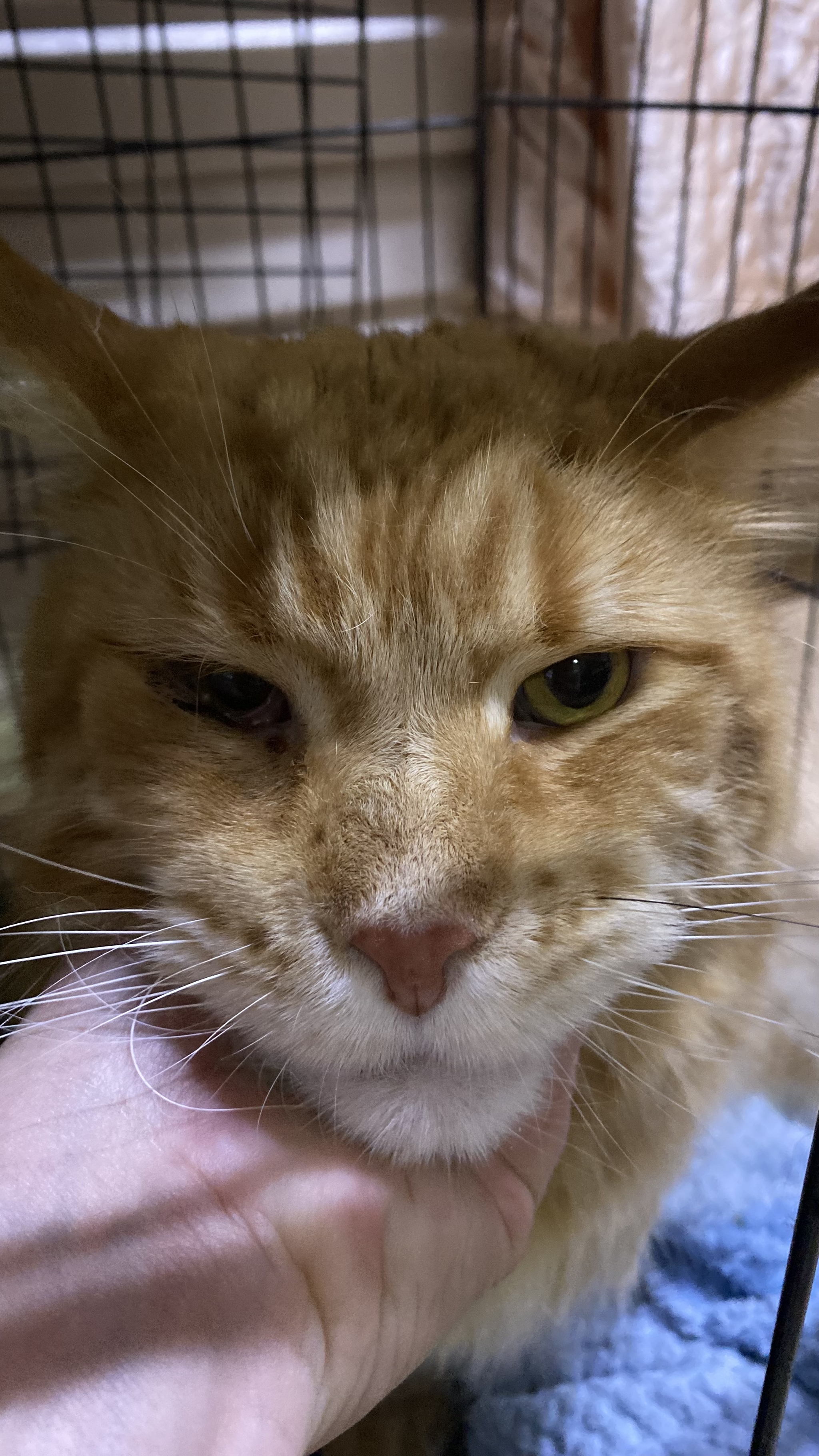 Кот в безопасности. Он в стрессе, ужасном стрессе. Есть проблемы со здоровьем, нужно разбираться. Проблема с глазиком, возможно проблема с внутренними органами. Не исключено, что его обижали. Он писает под себя, сидит в лотке, но что-то там не так… Вся попа мокрая... Поэтому и гадит… МКБ возможно или что-то другое.