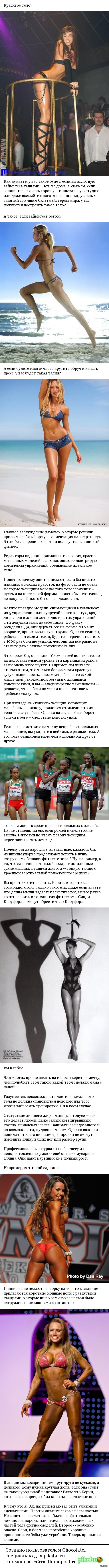 Текст человека, крайне некомпетентного. Например, на фотке показана девушка с сильно накачанными ногами (квадрицепсами в частности) и приписка далее "которые ни в коем случае нельзя было нагружать приседаниями со штангой". Вот только беда в том, что такие выраженные квадрицепсы не получить без приседаний со шатнгой: очень тяжелых и упорных приседов, которые, возможно, потянет не каждый мужчина. Т.к. на фото м.б. девушка в 50 кг весом, а приседает она с 90 кг. Уточнения в духе, что ноги вы не сделаете длиннее достойны капитана очевидности. Любому дураку ясно, что из 150 см в 190 см ты не вырастешь. Но из стопятидесятисантиметровой девушки весом в 60 кг можно получить стройную подтянутую красотку, которой будут в след оборачиваться, когда она будет гулять в коротких шортах. Уж лучше читать фитнесс журналы и пахать как лошадь в качалке, чем читать вот такое нытье, как этот пост и продолжать жиреть перед телевизором.