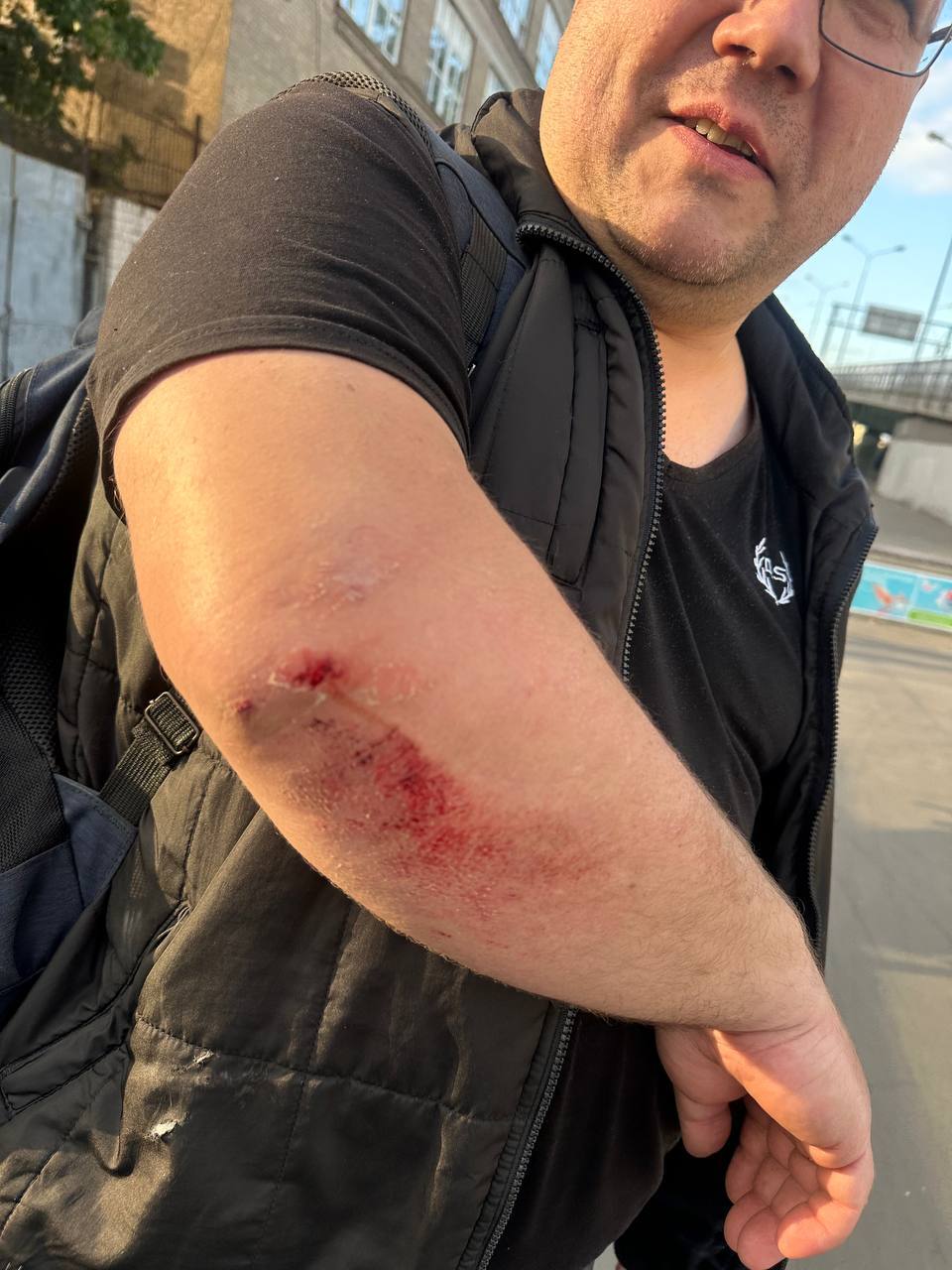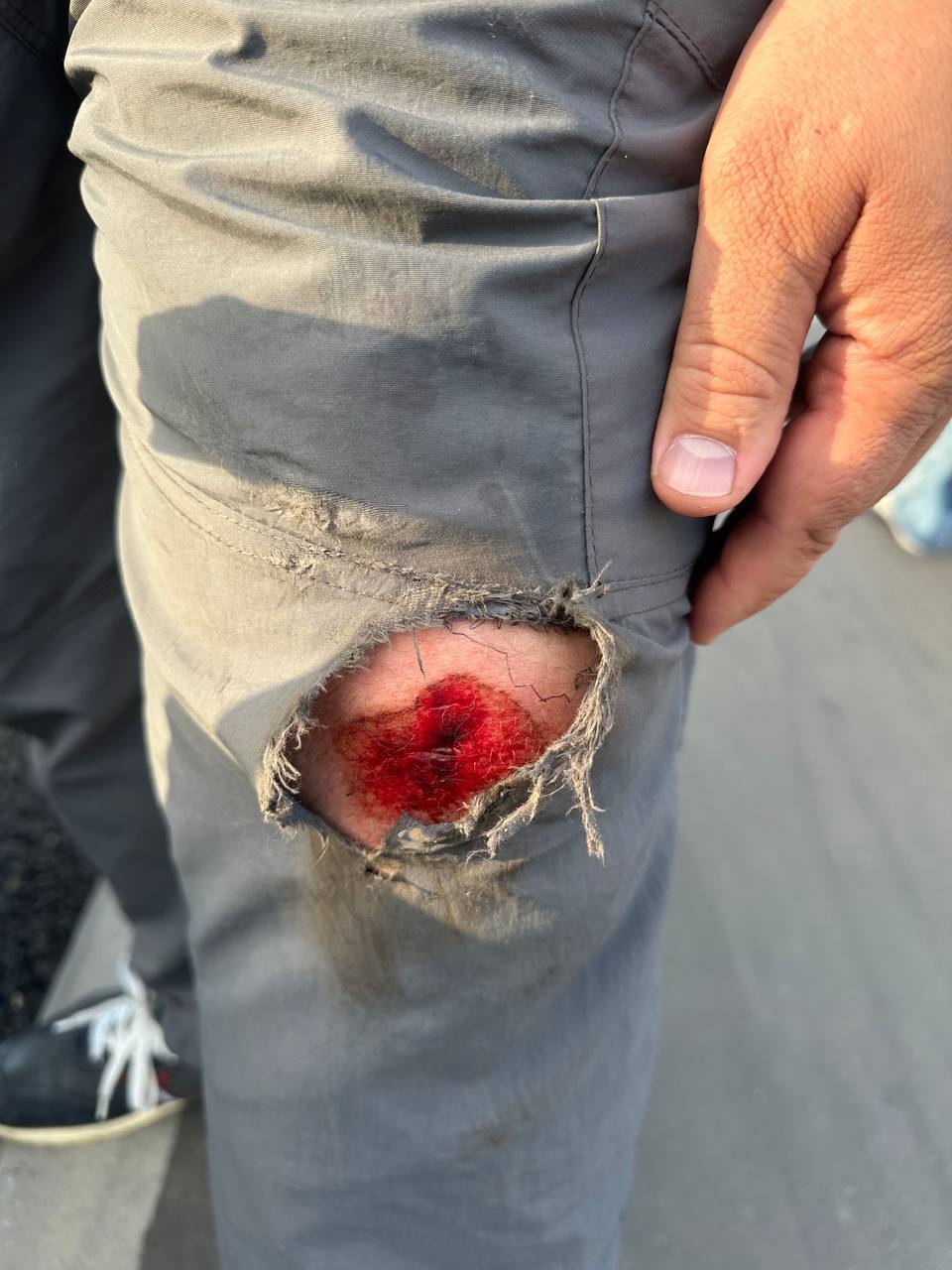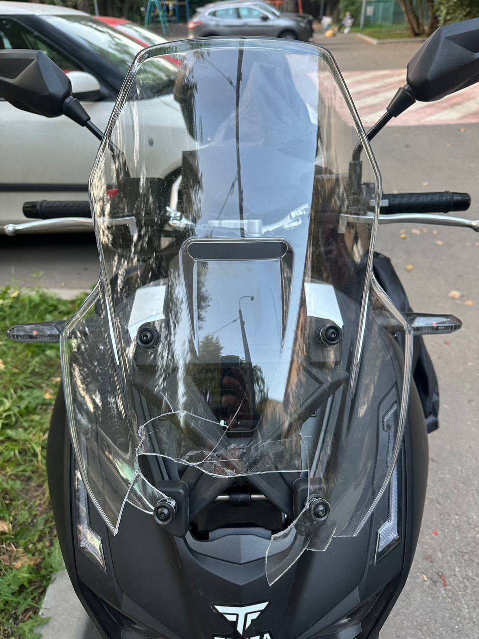 Самокатчик резко изменил траекторию движения и спровоцировал столкновение со скутером, который двигался позади. Сам самокатчик пострадал не сильно, повреждения скутера и его водителя - на фото.