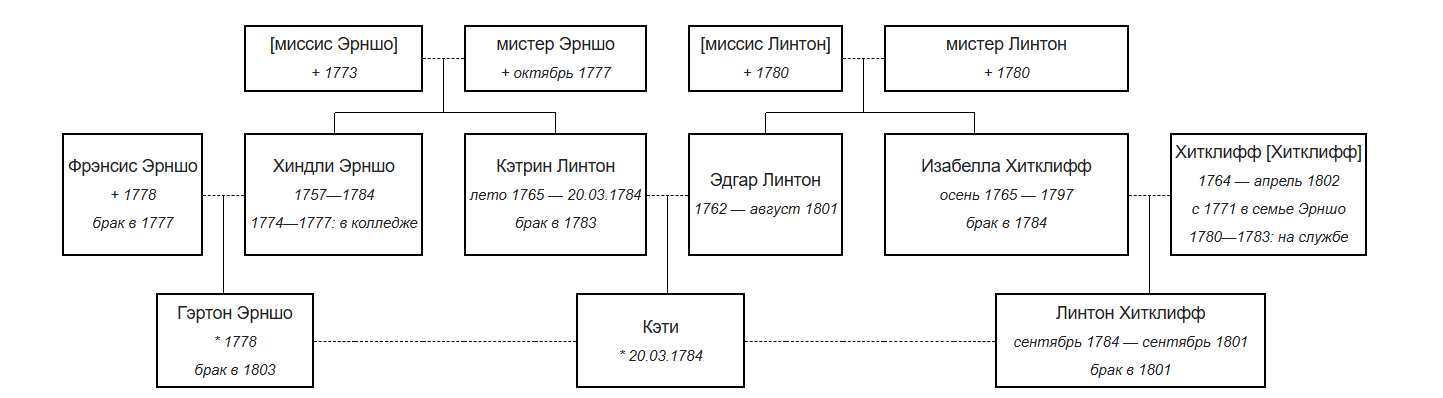 На его удачу, экономка застала всю историю и начала рассказывать, благо рассказчик был прикован к постели и не мог отвлечься. Как оказалось, раньше поместья принадлежали двум семьям, которые оказались полностью разрушены за два десятка лет. Скворцы принадлежали Линтонам (готовьтесь, будет много имен), которые все из себя образованные интеллигенты, а Перевал - Эрншо, которые уже наоборот, плоть от плоти земли.