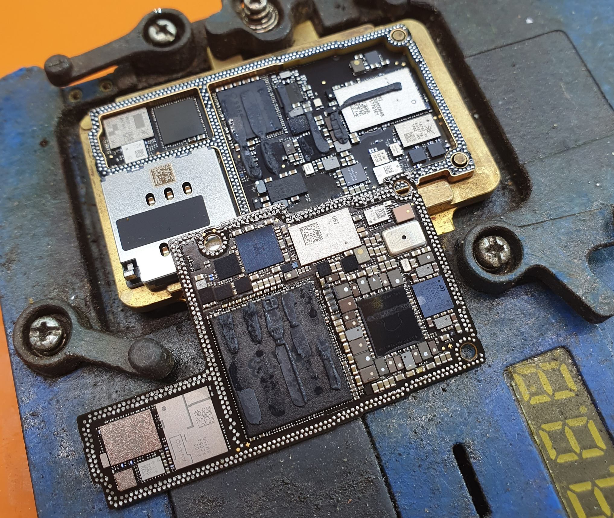 А это уже неисправность, которая возникла по сути во время предыдущего ремонта. Не, он ловит сеть и звонит, всё хорошо, только вот диапазон какой то потерялся. Перереболлил раму, но не срослось. И можно отдать так, но я всё же за свой счёт решил доделать, чтобы было хорошо, тем более делов на час.