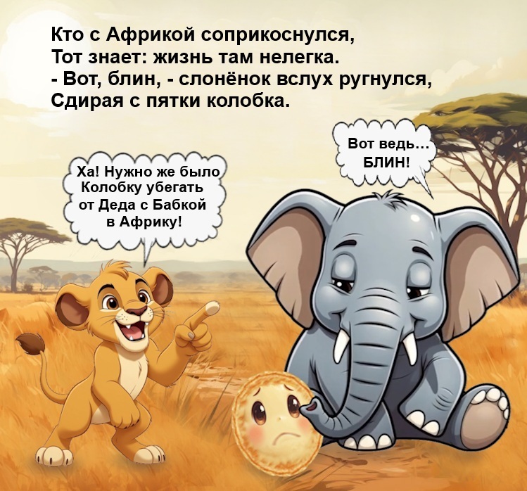 4 VeStr28 Юмор Не ходите, дети, в Африку гулять Серия Озорные Рассмешизмы 3 дня назад [моё] Контент нейросетей Юмор Колобок Африка Ирония Картинка с текстом Арты нейросетей 1 Ещё 0