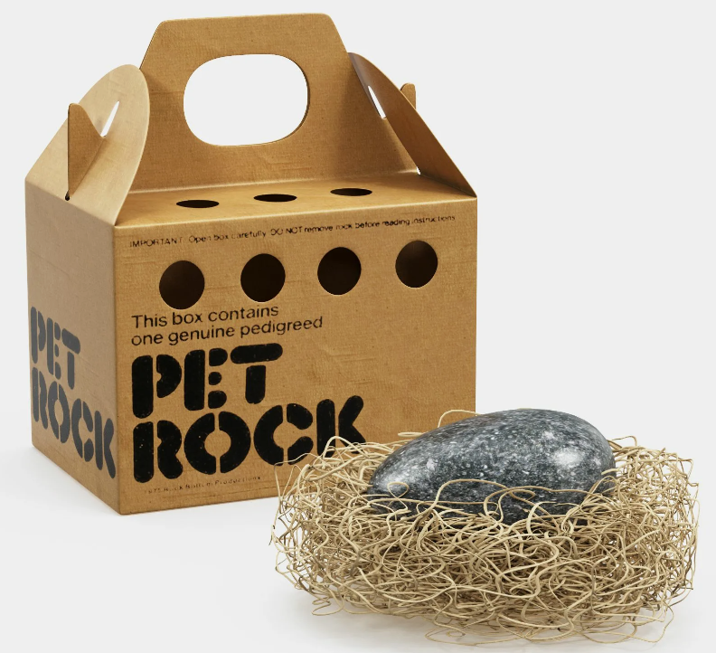 Продажа питомцев в виде камней по 3.9 баксов за штуку, в итоге - миллионы.