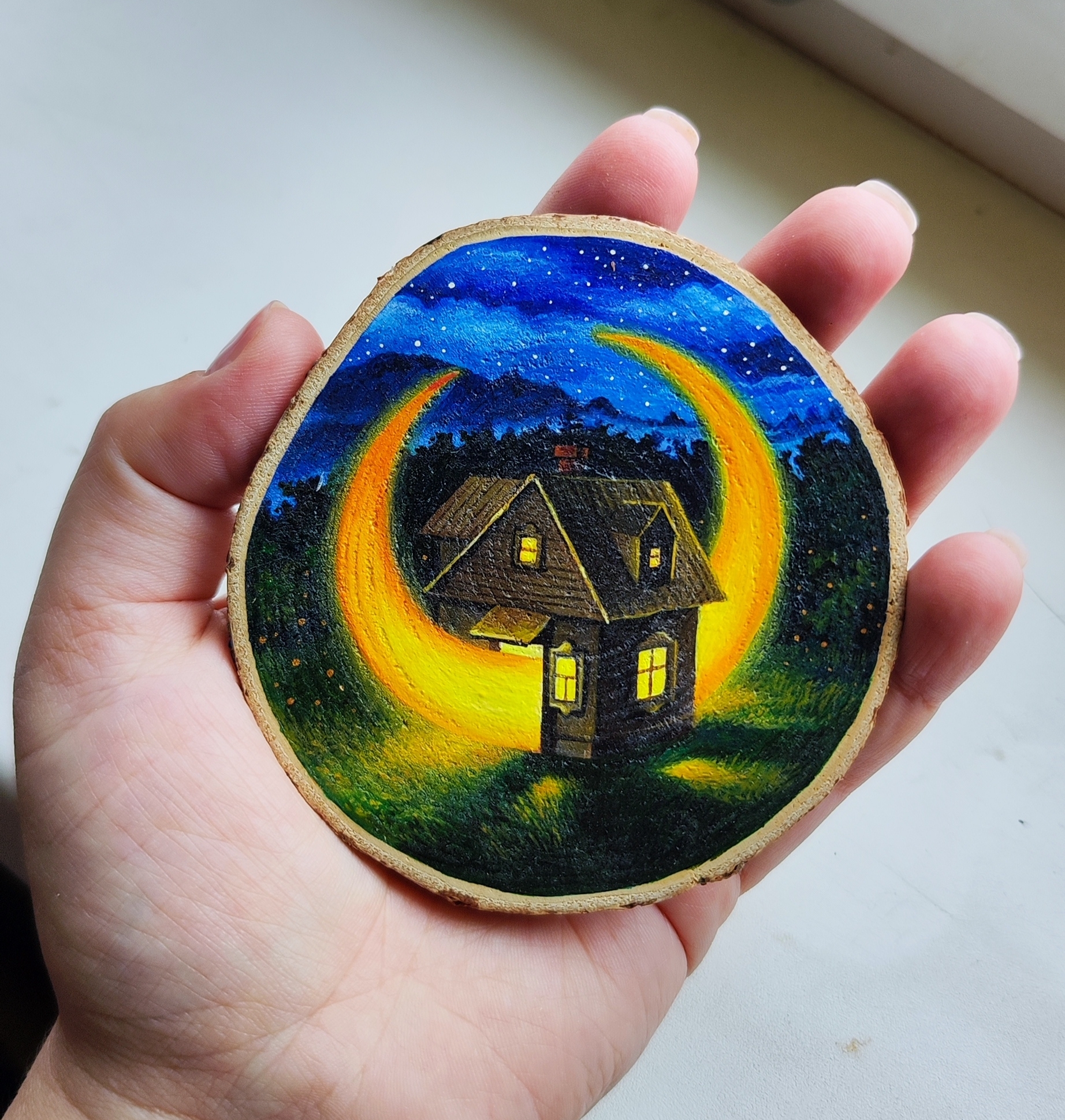 16 AnnaLum Не куплю. У нас есть луна дома 4 месяца назад Акрил, спил дерева. [моё] Луна Живопись Авторская живопись Арт Традиционный арт Сюрреализм Рисунок Ещё 0