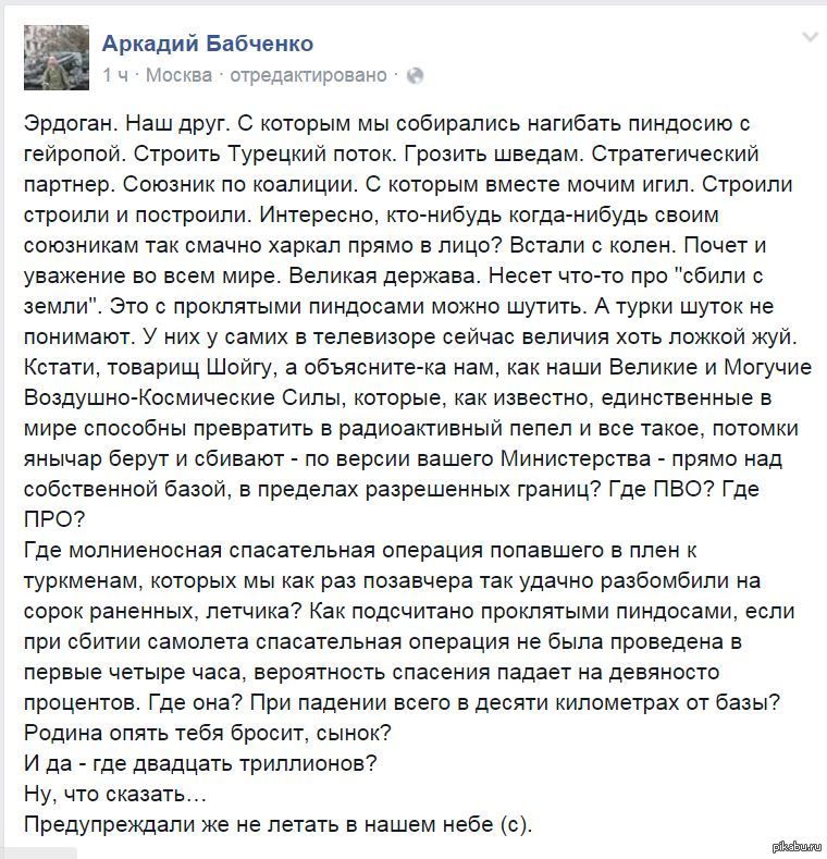 viper6812 Не летайте в Турцию 10 лет назад https://www.facebook.com/babchenkoa?fref=nf&pnref=story Су-24 Турция Аркадий Бабченко Вкс даун Тег Политика