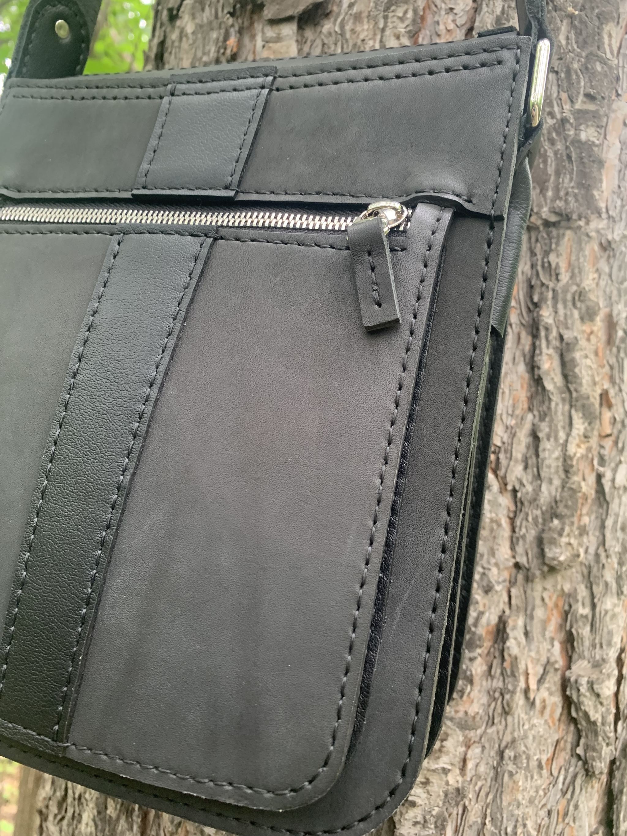 Процесс изготовления не снимал, хотел скорее опробовать выкройку (признаюсь-не моя-покупал), кое-как дождался поставки материала и за пару-тройку вечеров получилась такая вот сумка для повседневного использования.