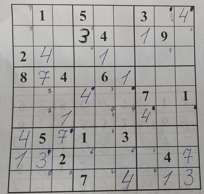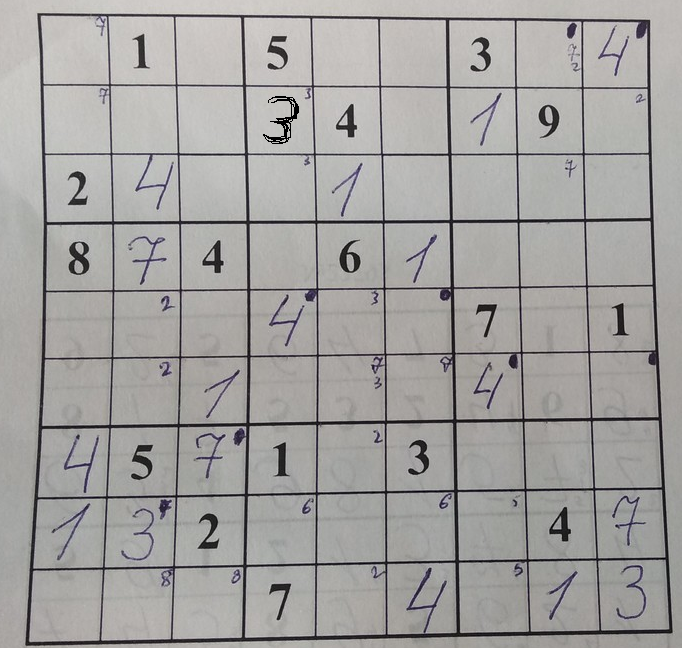 Я решил много судоку за свою жизнь, а тут покушаюсь на более сложную, и вот загвоздка, без помощи не могу решить..