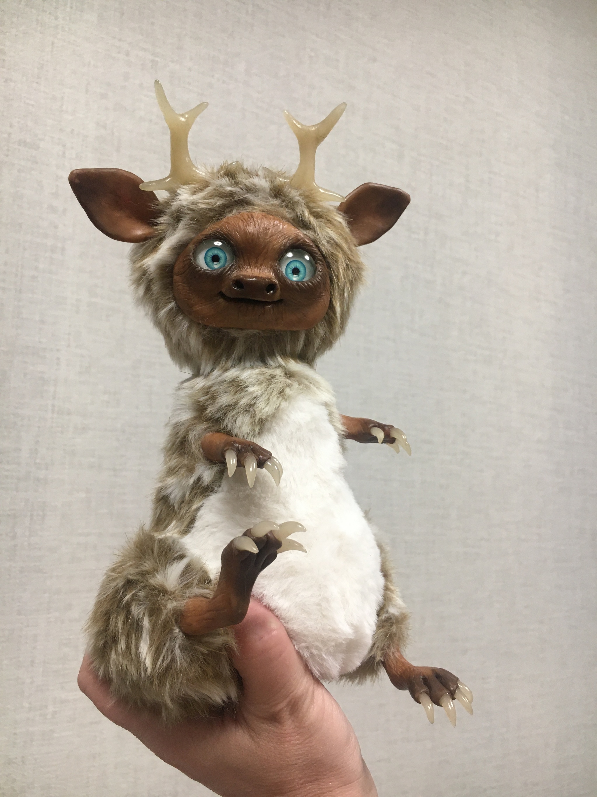 Техника та же: мех, запекаемая полимерка, сухая пастель, клей, ножницы, иголка с ниткой и акриловый лак для закрепления пастели