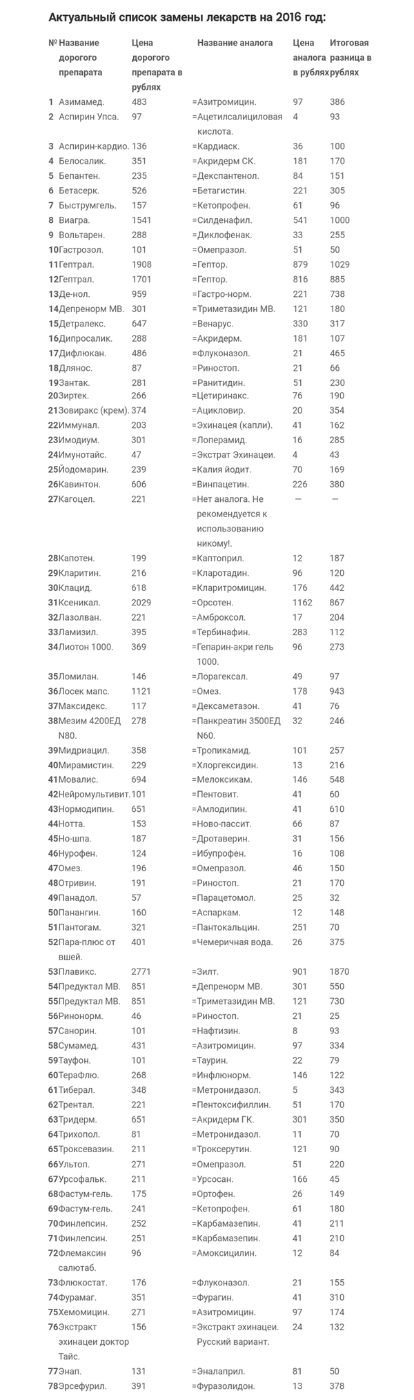 Дешевые аналоги дорогих лекарств Прежде всего, вот хорошая таблица: