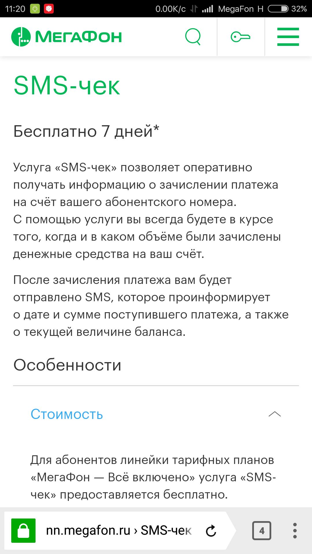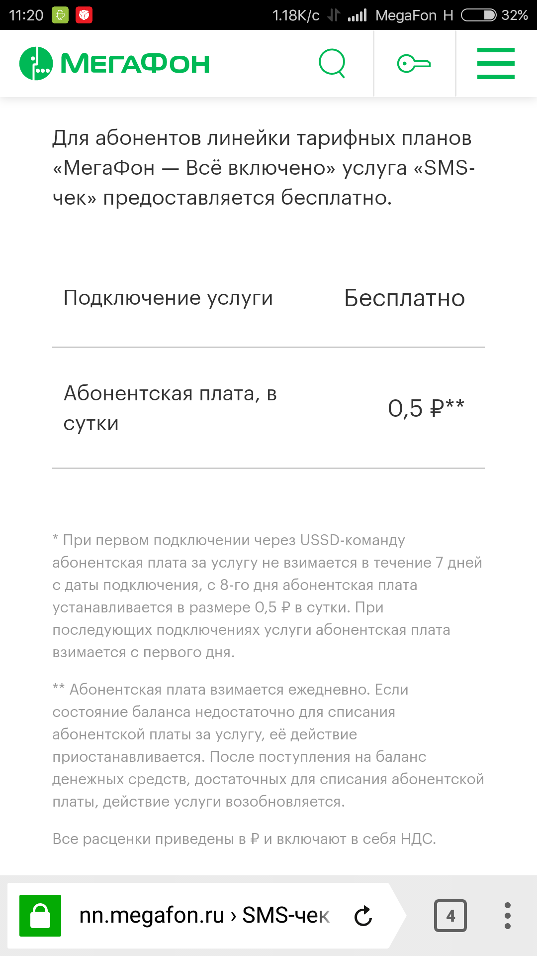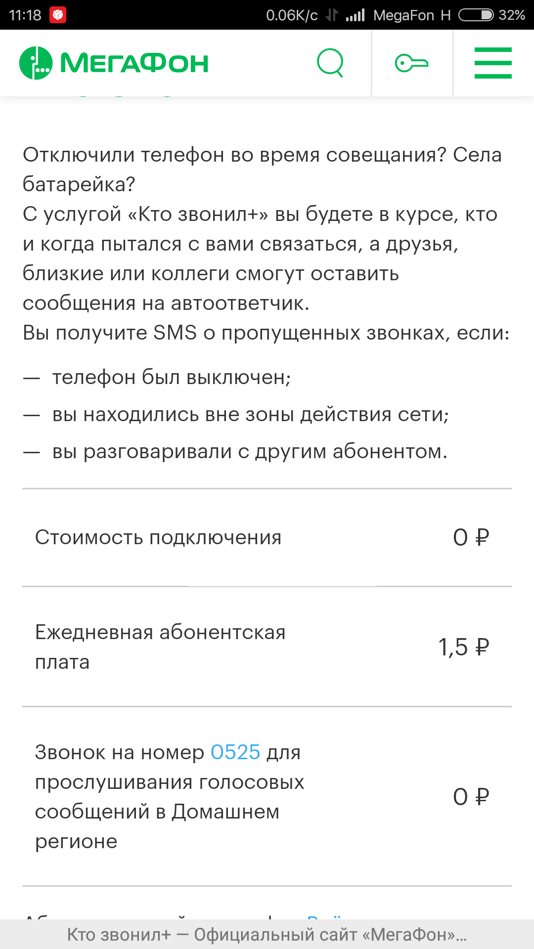 Но открыв подробное описание услуг мы видим следующие
