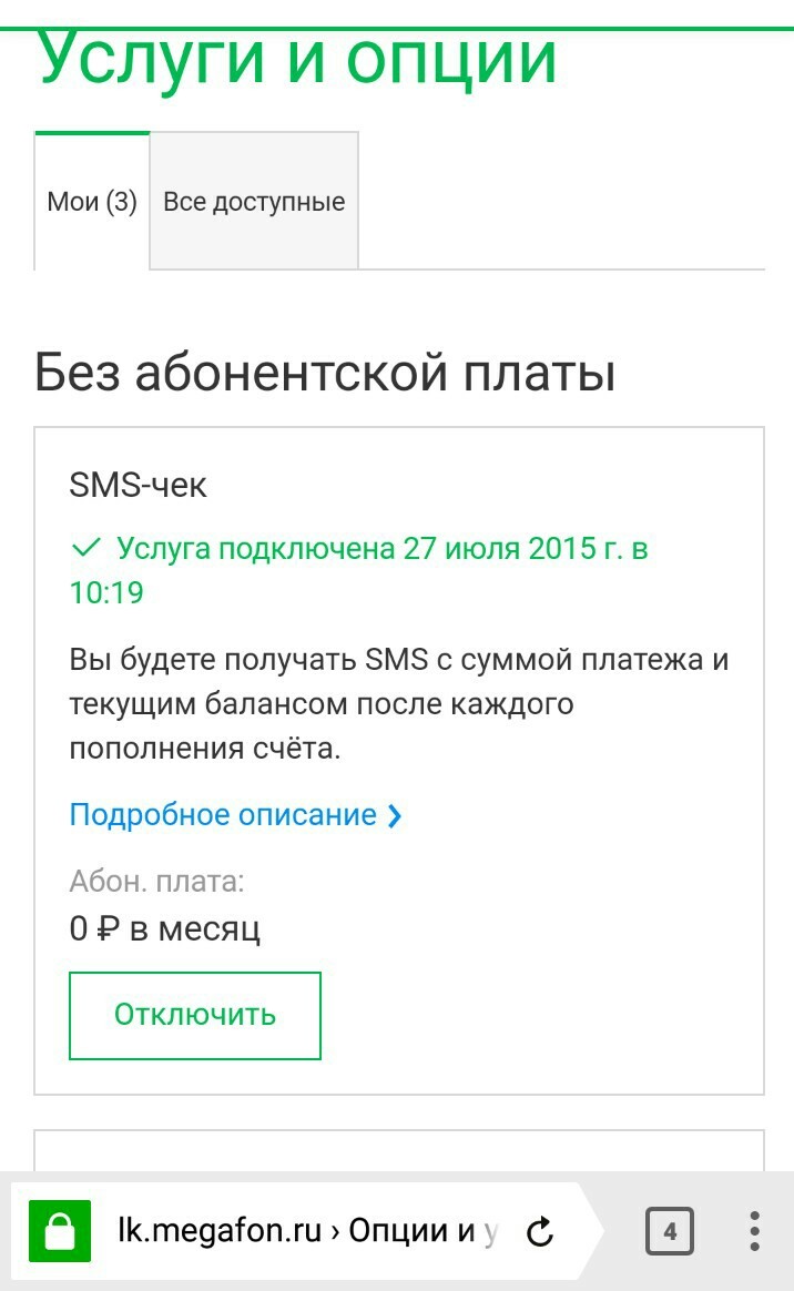 Перешёл на страницу личного кабинета, открыл вкладку услуги и на первый взгляд всё хорошо и впоряде