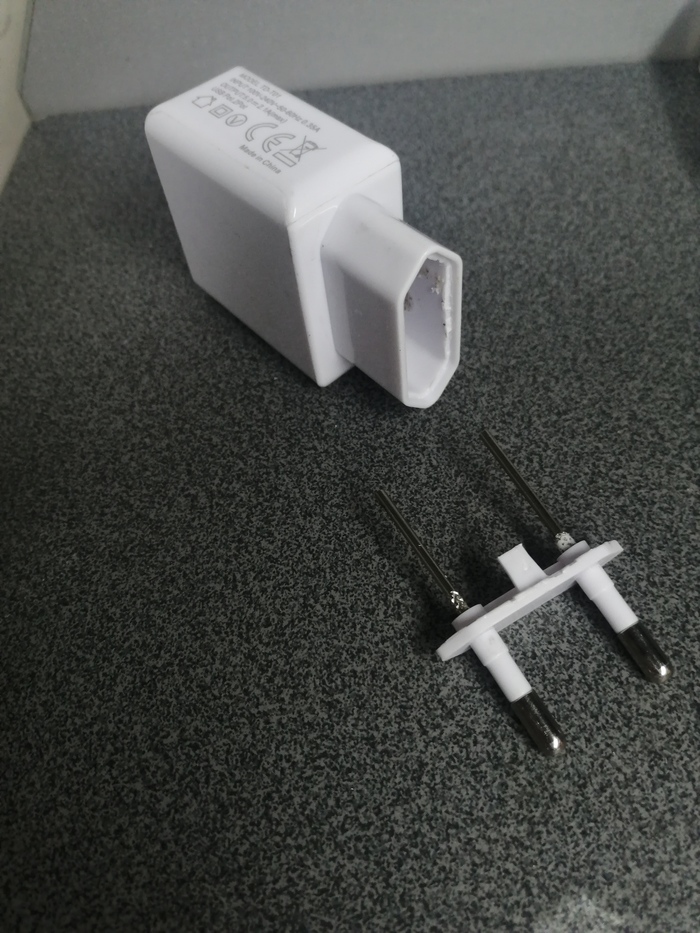 Сегодня при попытке достать с сетевого фильтра вилка осталась внутри с двумя штырями, это повезло что было в удлинителе (так бы пошёл выключать автомат) , а если такие зарядки покупают родители детям (хотя некоторые и взрослые попытались бы достать вилку так....)
