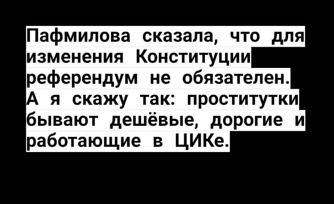 Медуза вообще вчера написала по горячему , что Путин хочет отменить запрет на несколько сроков подряд. Задрали набрасывать. В этом я не люблю нашу оппозицию. У них задача не сделать России лучше путём указания на неправильные действия И их критику конструктивную, а обосрать власть любым способом, используя любые методы. Меня такой подход не устраивает.