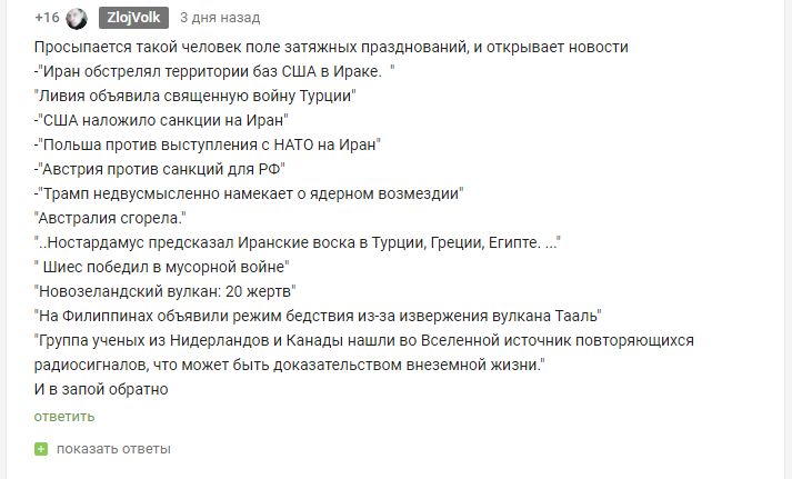 Извините, подскажите, а откуда конкретно вы черпаете информацию и новости? А то я вроде не бухаю, в инете сижу, на Пикабу, вк листаю, а вечно нихера не знаю.