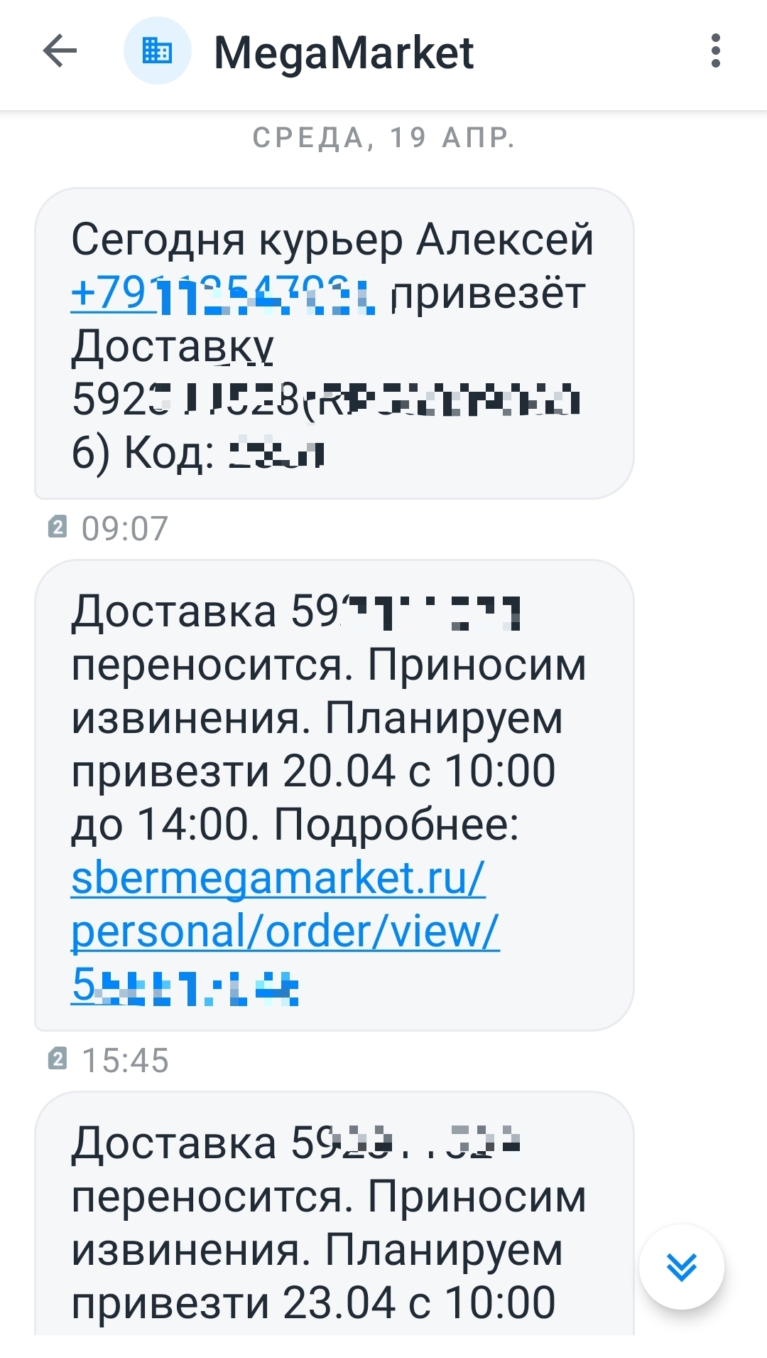 Через десять, пятнадцать, двадцать, тридцать минут я могу взять в магазине (что я уже и сделал). Мне нужна была доставка в согласованное время, а не обсёр конторы три раза подряд.