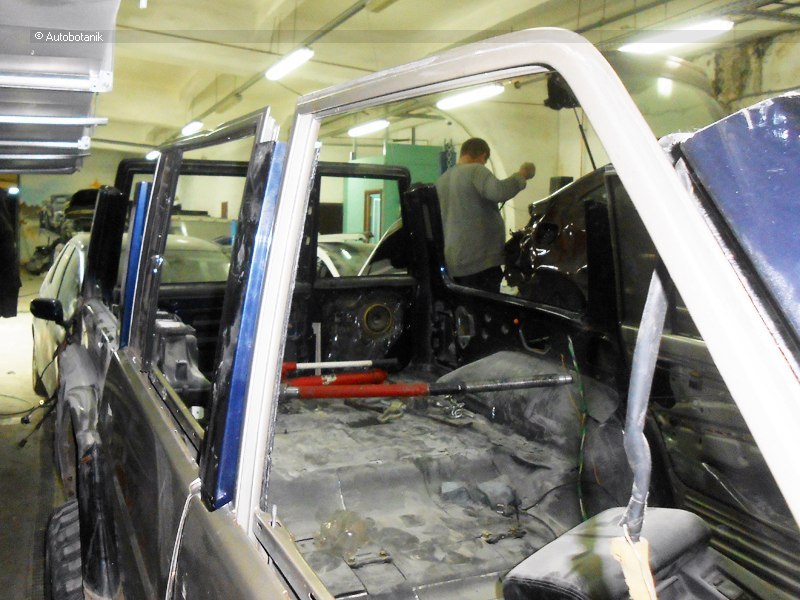 В проеме задних дверей - наоборот, работаем гидравлической стяжкой,