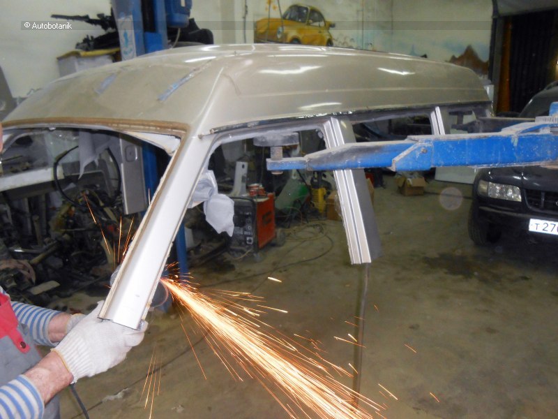 Крыша после полного срезания со стоек - аж играет, пружинит внутрь,