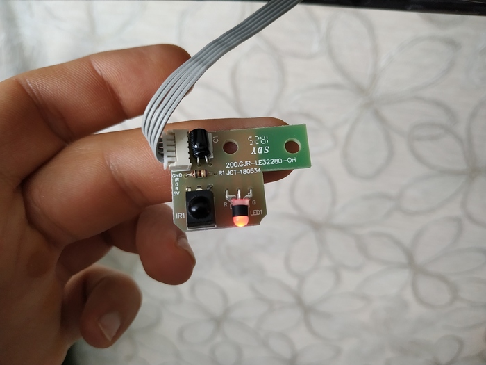 Подозреваю, что сломалось что-то в блоке, где стоит инфракрасный датчик в телевизоре (фото прилагаю)