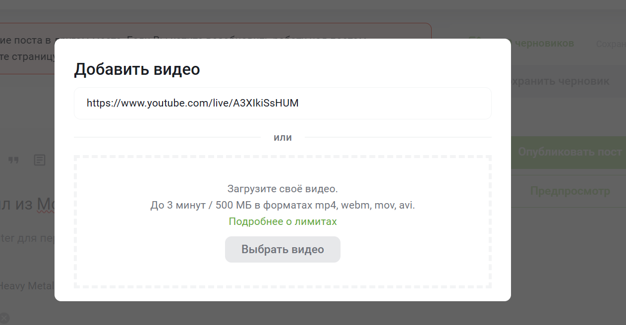 Не работает вставка видео по ссылке
