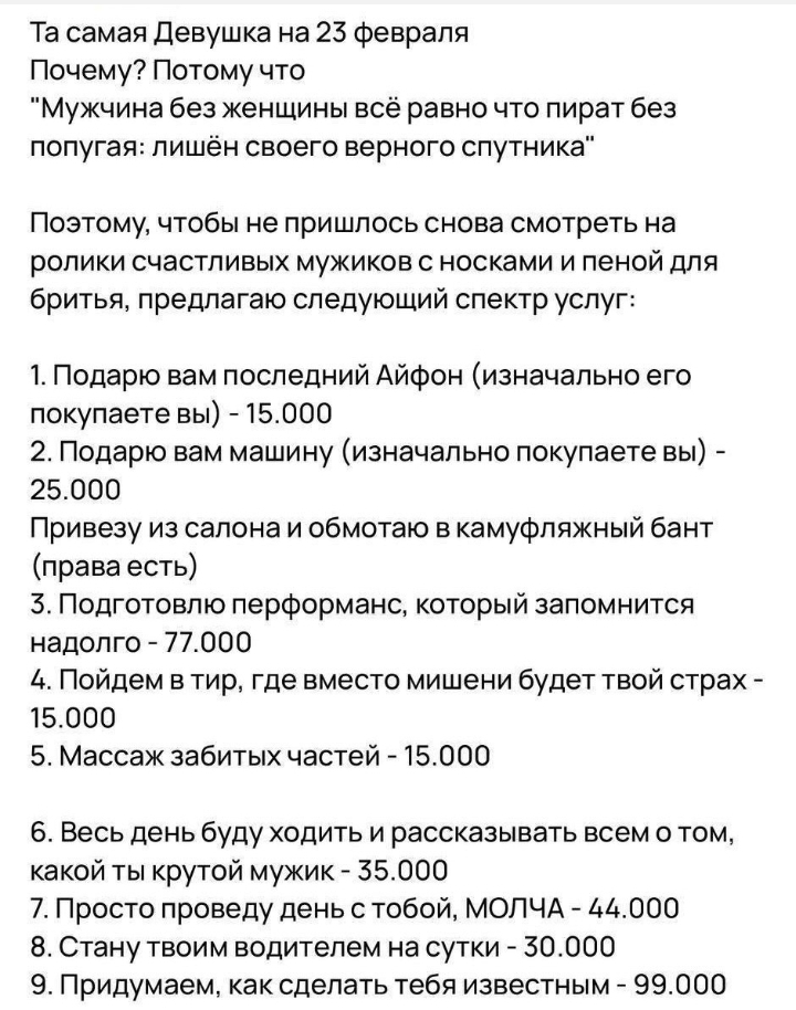 3 clothesfordoll Не реклама!!! 1 месяц назад Мужчины, с 23 февраля вас! Заработок Услуги 23 февраля - День Защитника Отечества Объявление Длиннопост 4 1 1 Ещё 0