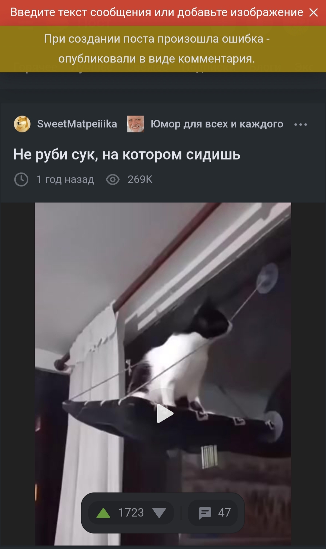 14 Novogrek 9 часов назад Не руби сук, на котором сидишь Не работает ответ постом Кот Падение Видео Вертикальное видео Короткие видео Длиннопост 2 1 Ещё 0