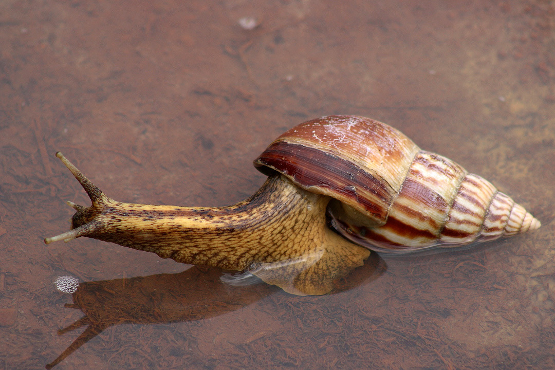 И всё бы ничего, если бы человек не начал распространять её по миру. Оказалось, что гигантская ахатина довольно гибко подходит к среде своего обитания приспосабливаясь и осваиваясь в совершенно разных ландшафтах и биотопах.