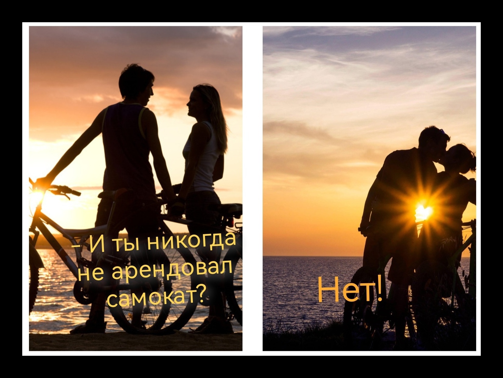 5 1vicator Юмор "Не самокат, да любовь!" 5 месяцев назад Картинка с текстом Мемы Мужчины и женщины Самокатчики 4 Ещё 0