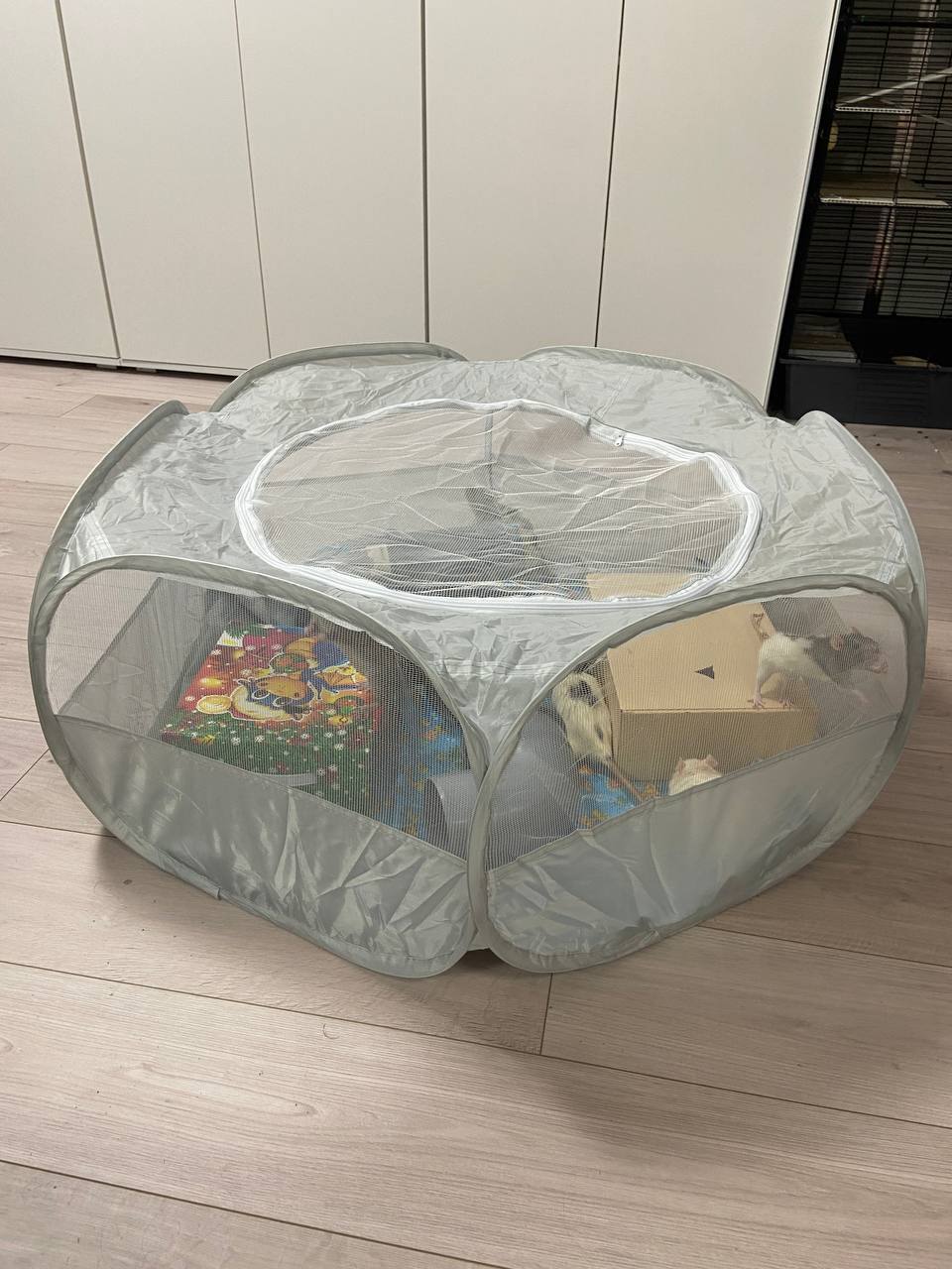 Купили мини вольер для мелких животных, так как не всегда есть возможность выпускать их в комнату на время уборки клетки.