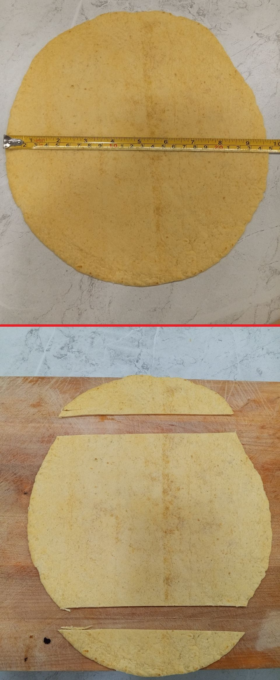 Едем в Мексику, покупаем сырную тортилью и срезаем сверху и снизу примерно по 3см: