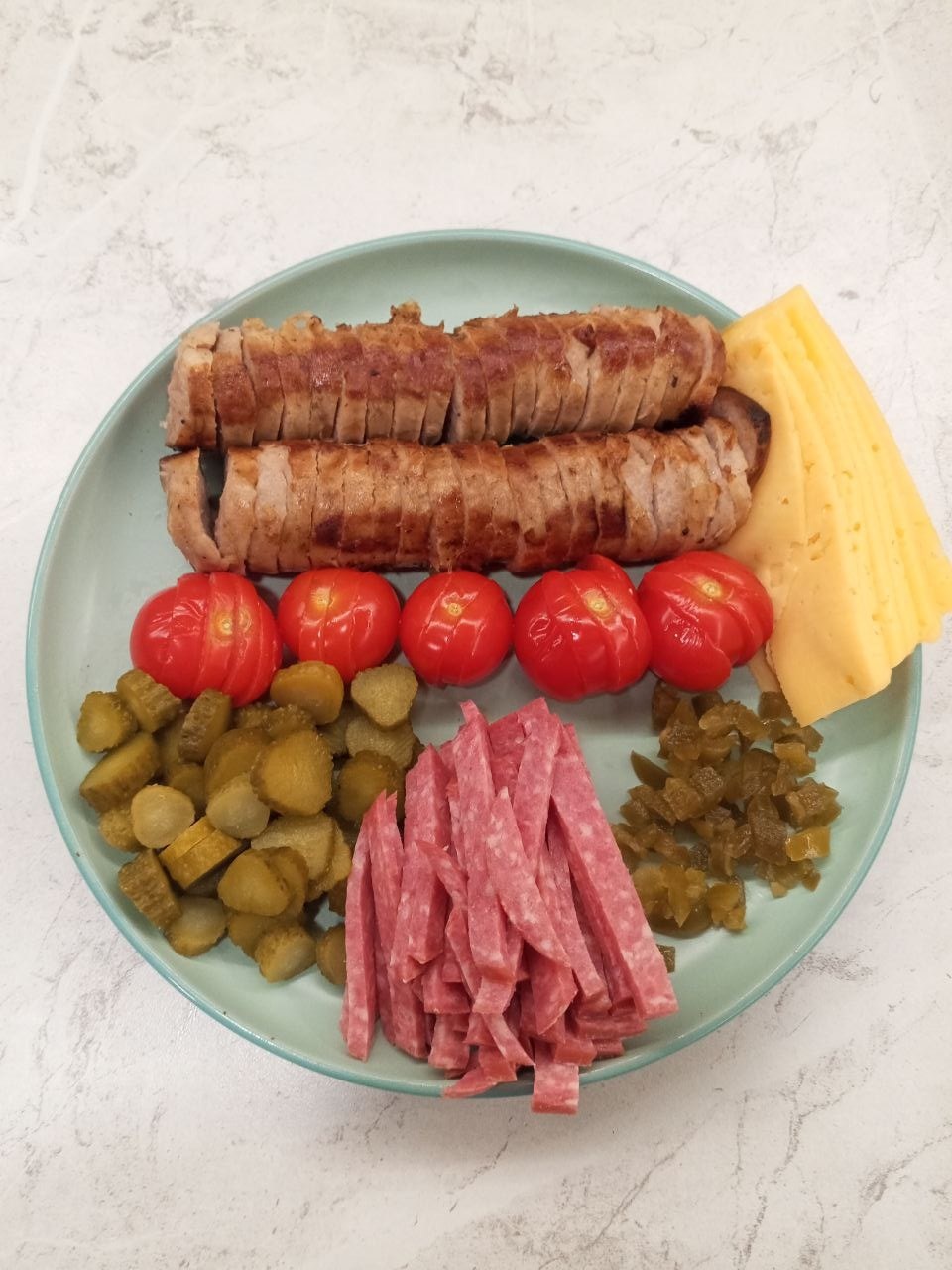 Нарезаем, кладём в тарелку и ставим возле входа в квартиру, чтобы ни один халяльный к нам не проник)