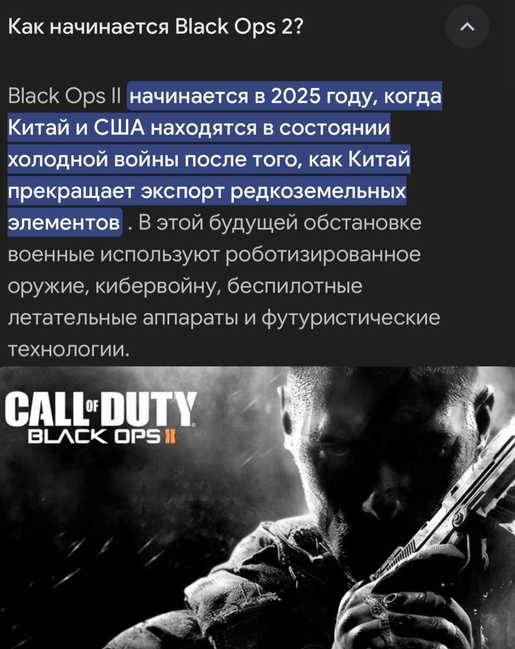 10 p3rsonage Не Симпсонами едиными....совпадение или рептилойды ? :) 8 месяцев назад Как известно, Симпсонам давно приписывают талант предсказывать будущее. Но оказывается не только они умеют в гадалку :) Сама игра, ксати, не фонтан. Но тут уж на любителя [моё] Предсказание Тарифы Дональд Трамп Игры Call of Duty: Black Ops США Китай Скриншот 1 Ещё 0