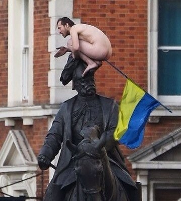 Я был бы только за, если бы 29-летний гражданин Украины, не имеющий постоянного места жительства и сидящий в голом виде на памятнике принцу Георгу в центральном районе Уайтхолла, действительно засунул бы себе прапор (флаг) независимой и Европейской державы прямиком в свой газопровод, но увы(