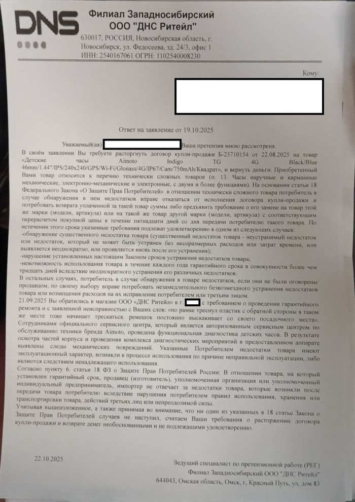 Подарили ребёнку смарт часы на ДР, что бы он к ним привык в садик их не надевали. Через некоторое время заметил что рамка треснула, + с другой стороны видна неоднородность пластика и постоянно вылетающий ремешок. Пользоваться такими часами просто невозможно. Отнёс их в ДНС, но в ДНС отказали сославшись на механическое повреждение.