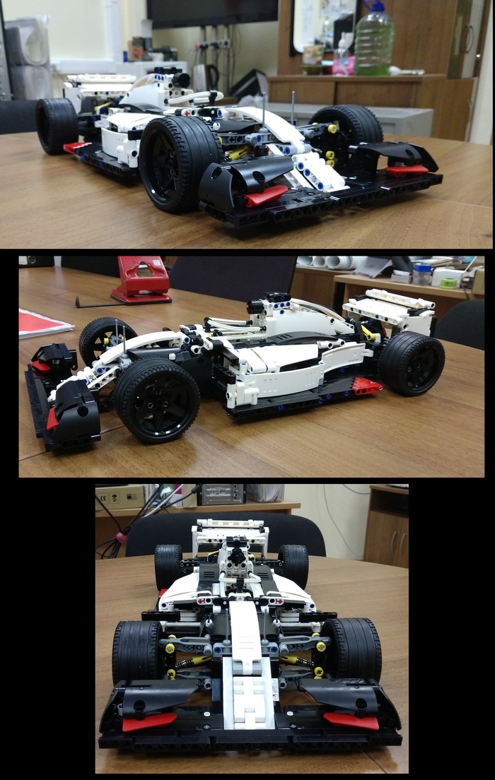 Но внешне авто выглядит очень хорошо. Как дополнение серии болидов F-1 весьма неплохо. Да и вообще как машина из лего техник смотрится классно. При сборке я получил удовольствие, особенно при сборке элементов подвески, пусть и практически бесполезной, но красиво выглядящей. А тут большего и не надо.