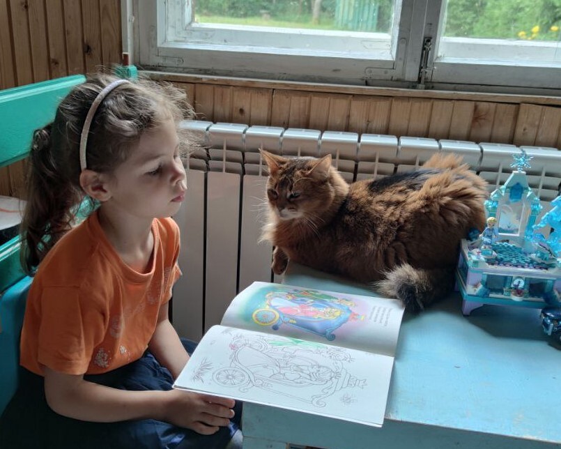 Однажды к нам на даче на участок зашел соседский абиссинец. Это был первый случай, когда Василиса не шипела и не рычала на чужака. Они почти час сидели и смотрели друг на друга.