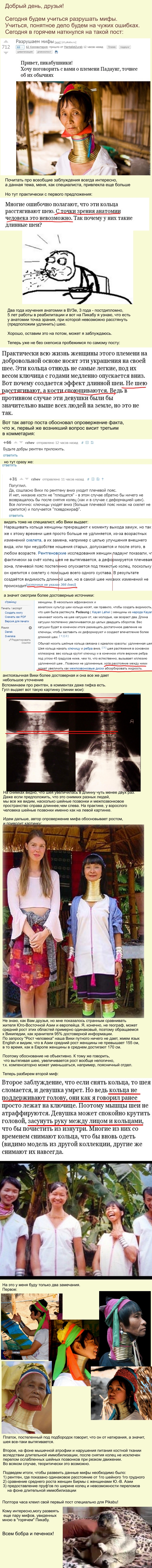 В целом неплохо, но покоробила фраза "Платок, постеленный под подбородок говорит, что он от натирания, а значит, шея все-таки вытягивается" Если надеть рубашку (это не металлические кольца) с немного высоковатым и узким воротником, то шею будет очень даже натирать, но при этом шея останется прежней.